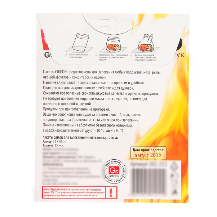 Пакет для запекания универсал. Grifon 30*40см, 5шт