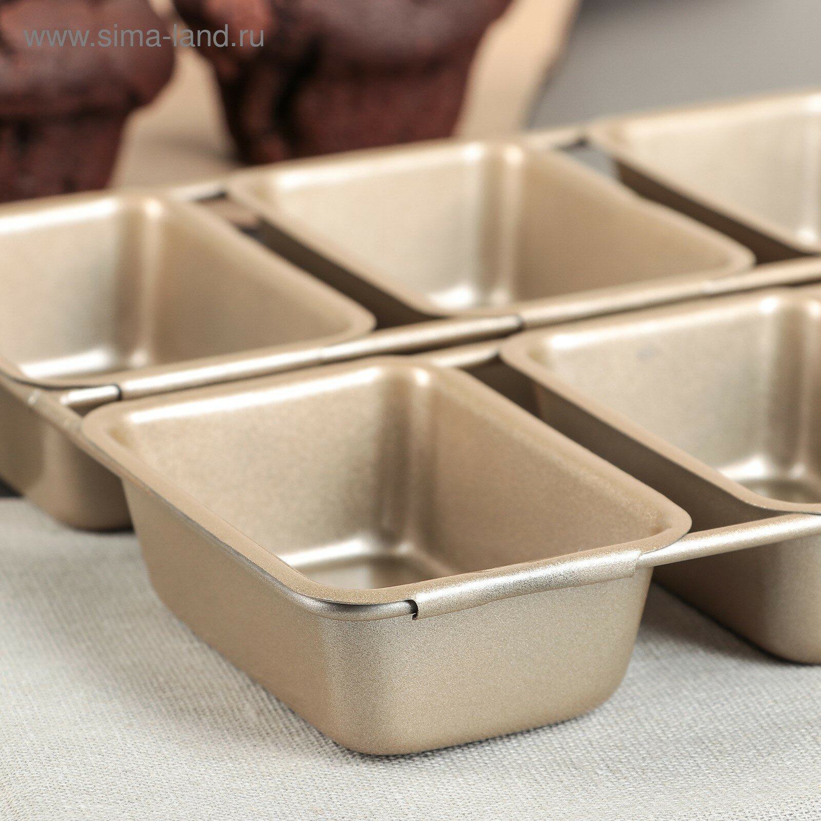 Форма для выпечки «Прямоугольник. Рэнди», 21,5×21 см, 6 ячеек, антипригарное покрытие, цвет золотой интересное: