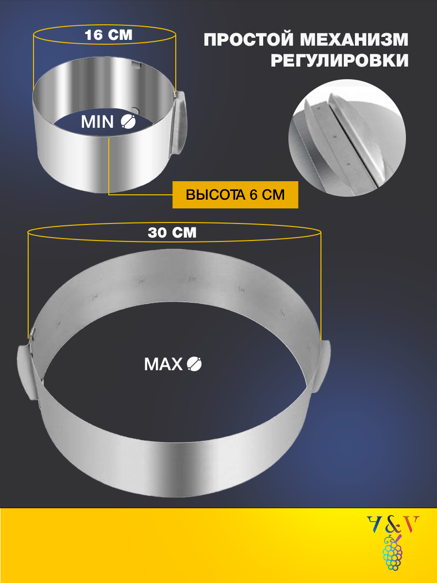 Форма для выпечки бисквита круглая / С регулируемым диаметром 16 - 30 см / 1шт. интересное: