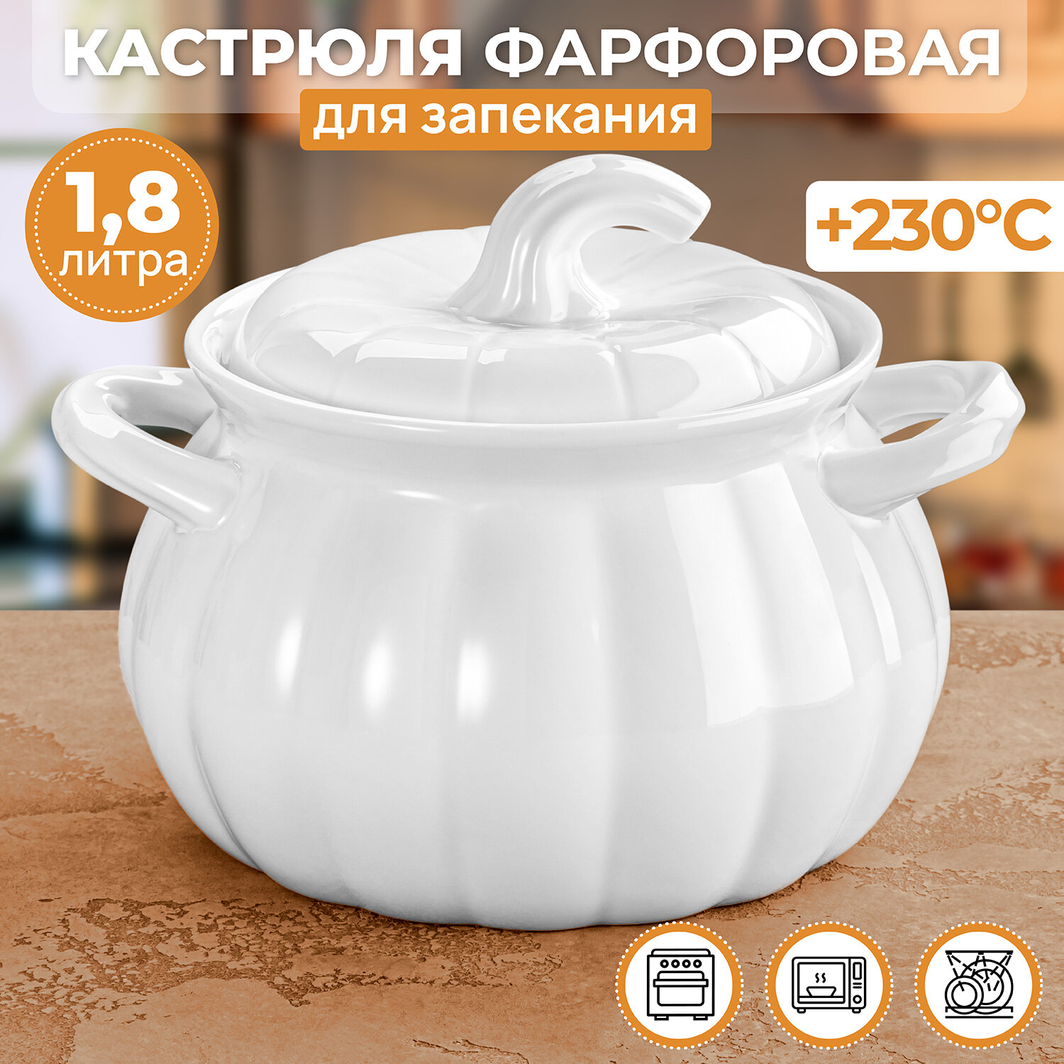 Форма, кастрюля для запекания 1,8 л Elan Gallery Тыква, 21,5х19х16 см, с крышкой интересное: