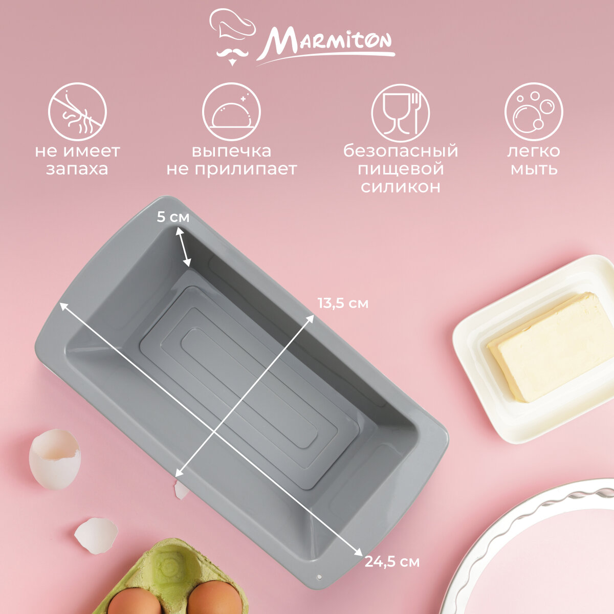Купить Форма силиконовая для выпечки/запекания/торта/шоколада/кексов/бисквита, прямоугольная, 24,5*13,5*5 см "Marmiton" BASIC
