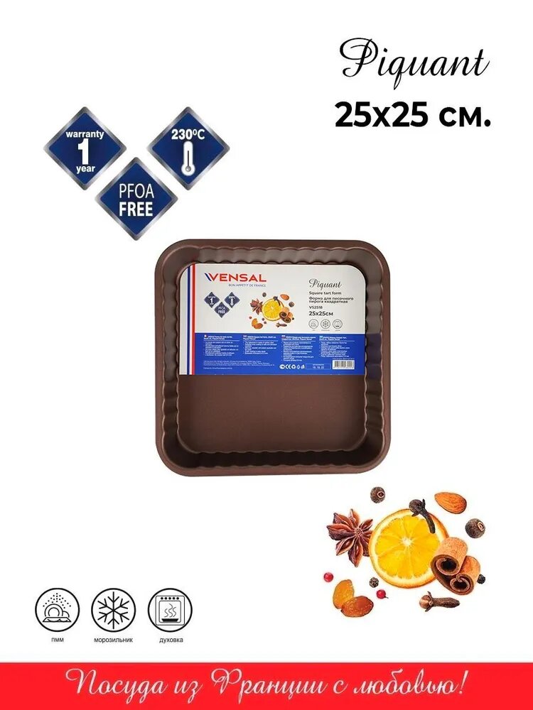 Форма для песочного пирога квадратная 25х25см Piquant Vensal VS2518 интересное: