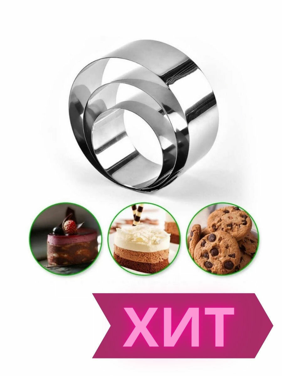 Кулинарные кольца из алюминия, набор из 3 штук, диаметр 10 см 8 см 6 см интересное: