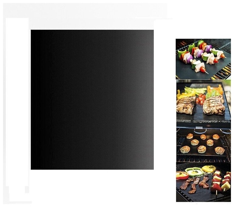 Многоразовый антипригарный тефлоновый коврик для барбекю, гриля, выпечки 0,2мм, 24х34см. Цвет: черный интересное: