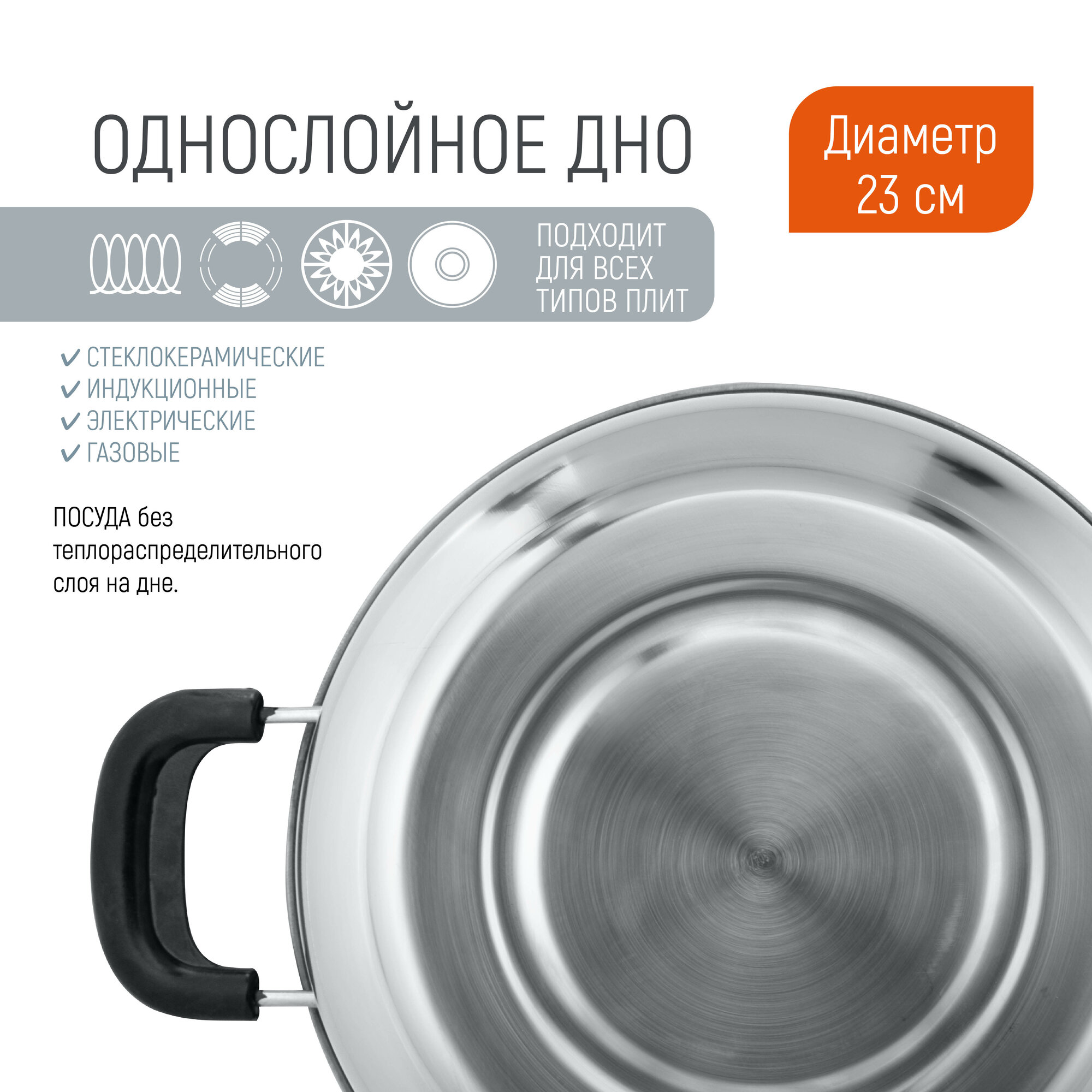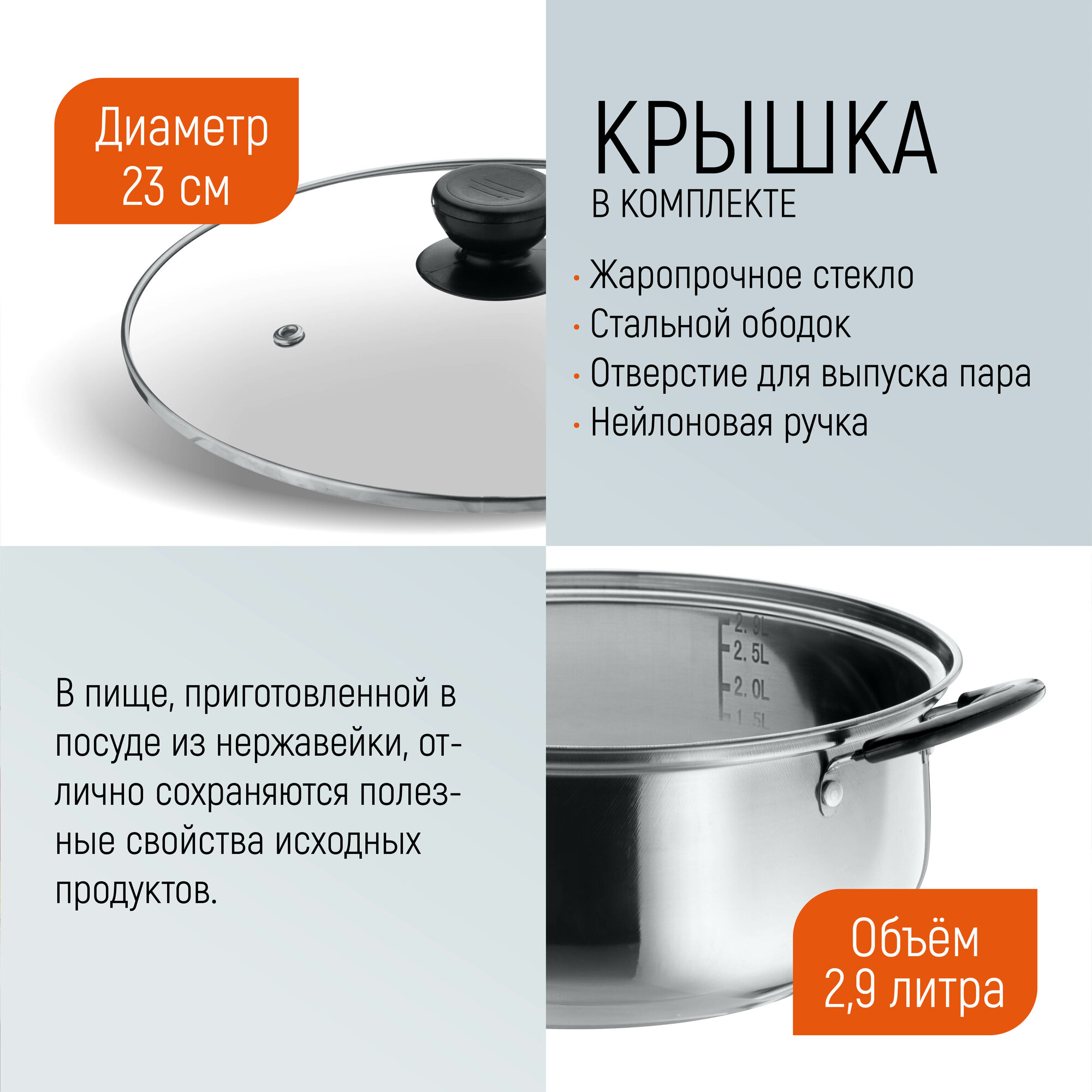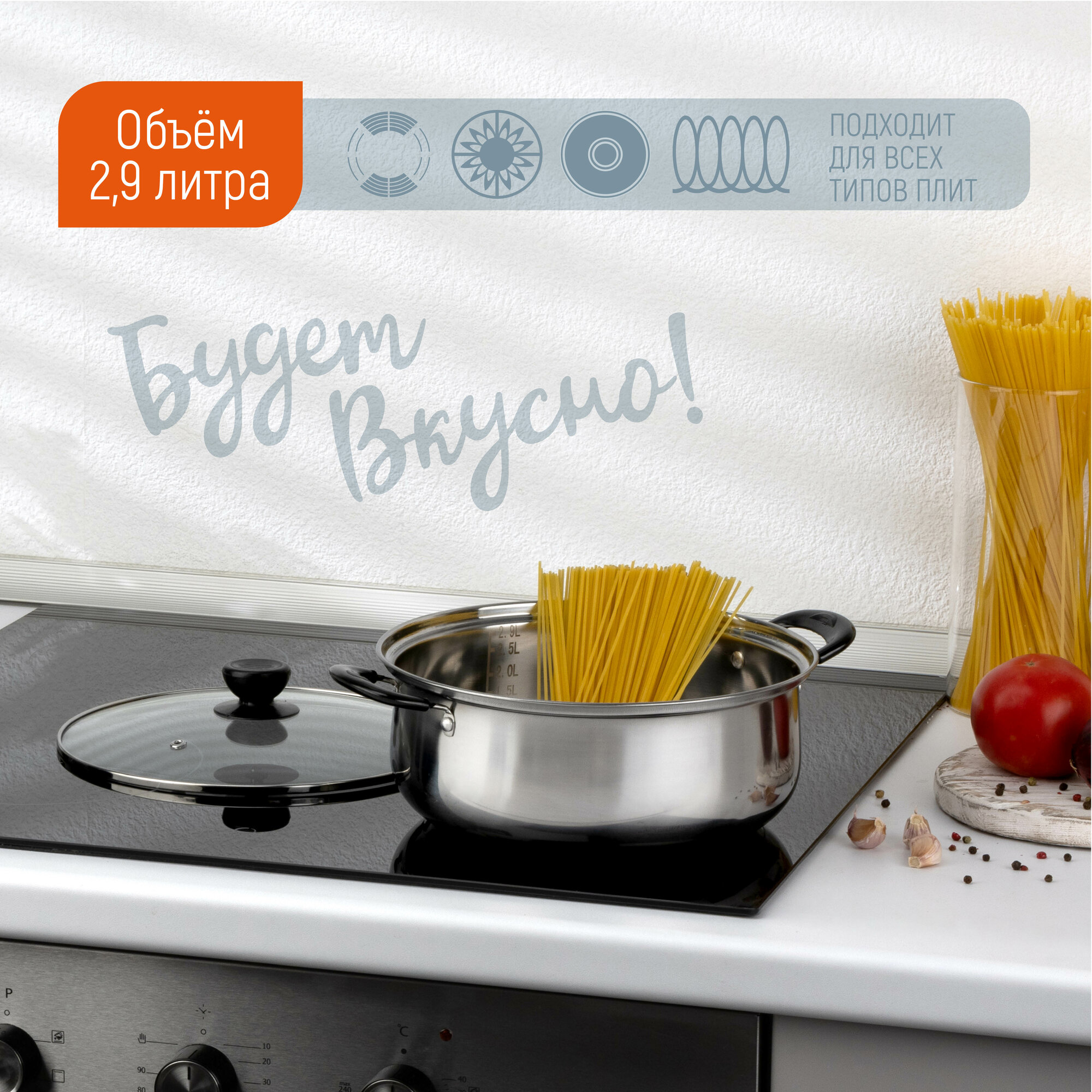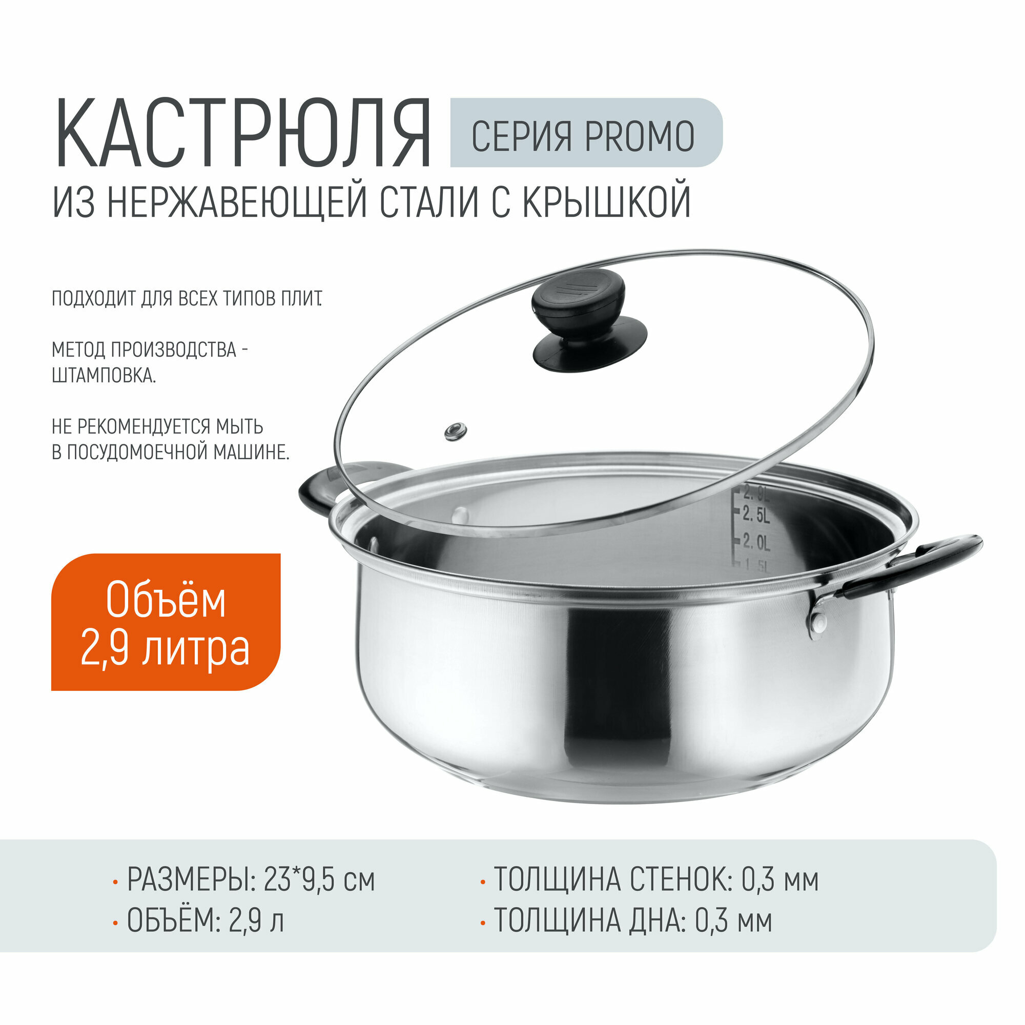 Купить Кастрюля Promo, объем 2,9 л, из нержавеющей стали с крышкой из жаропрочного стекла