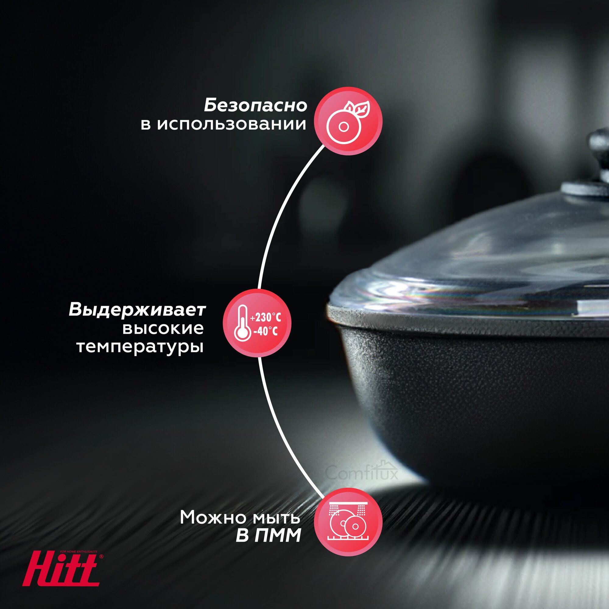 Крышка стеклянная Hitt для сковороды и кастрюли 30 см интересное: