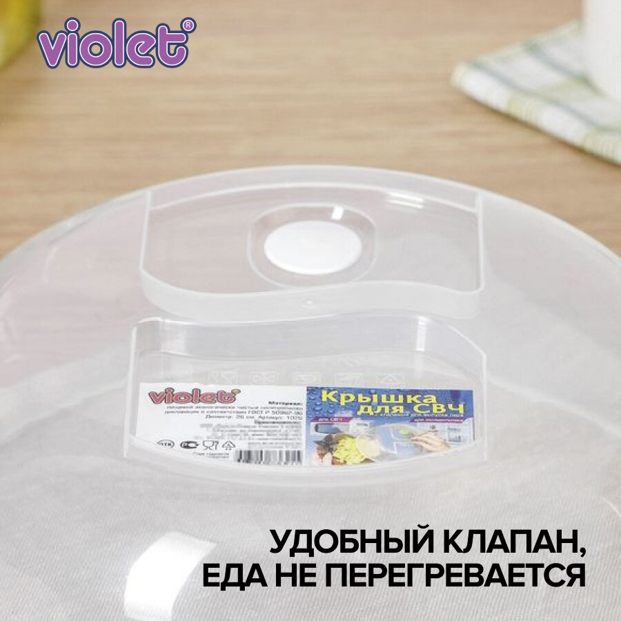 Крышка для СВЧ пластмассовая д26см, h9см, с клапаном, прозрачный (Россия) интересное: