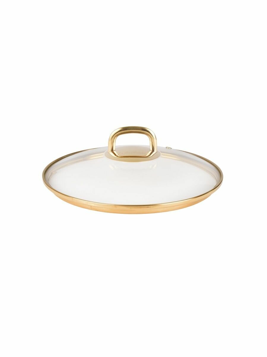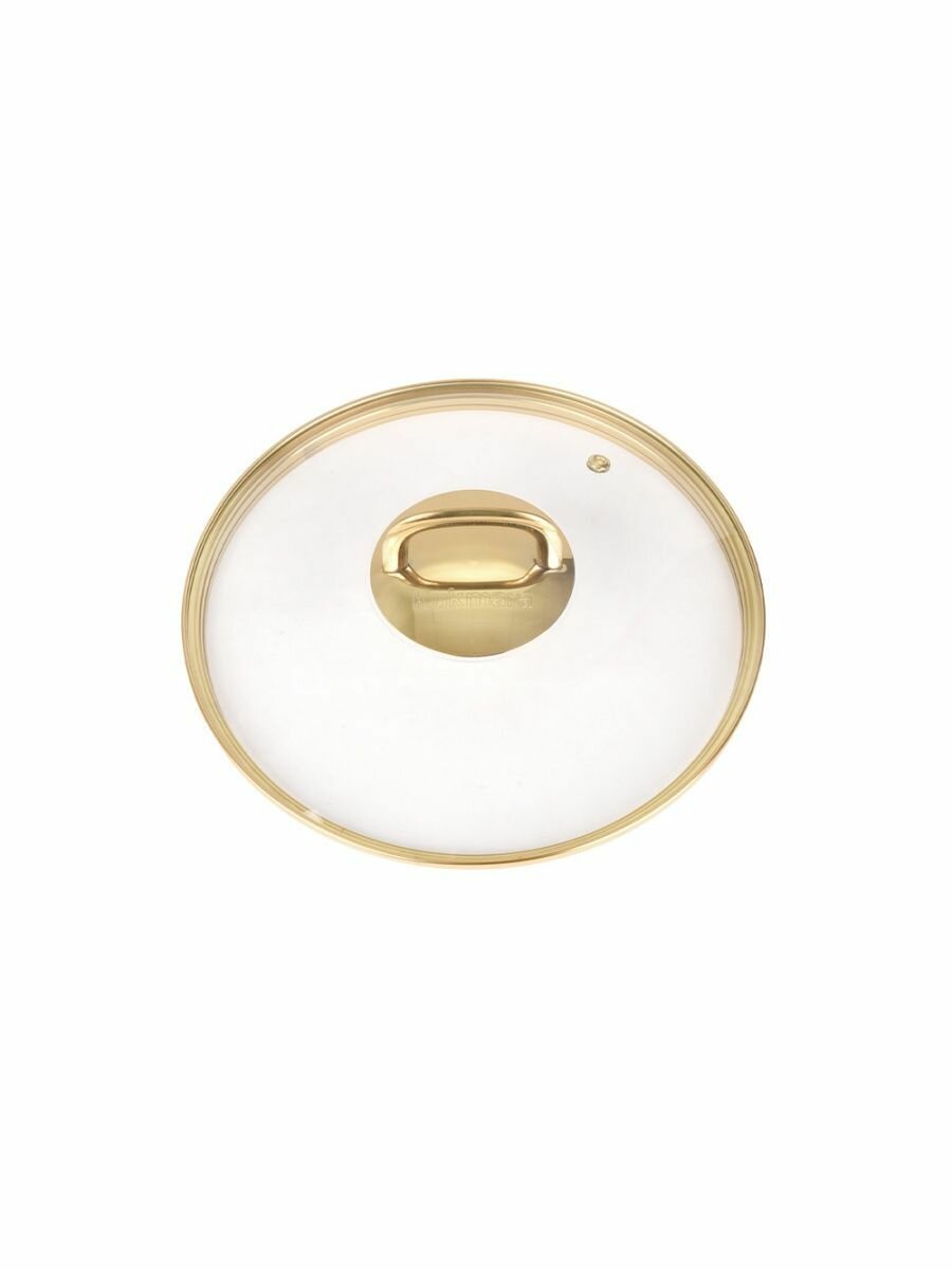 Крышка стеклянная Kukmara 240мм, с ободом и пароотводом из нерж. стали под золото и ручкой-кнопкой