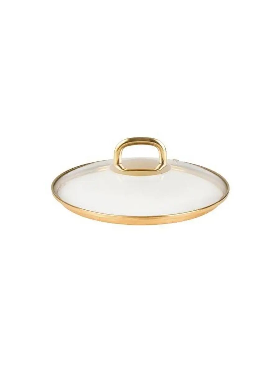 Крышка стеклянная Kukmara 240мм, с ободом и пароотводом из нерж. стали под золото и ручкой-кнопкой
