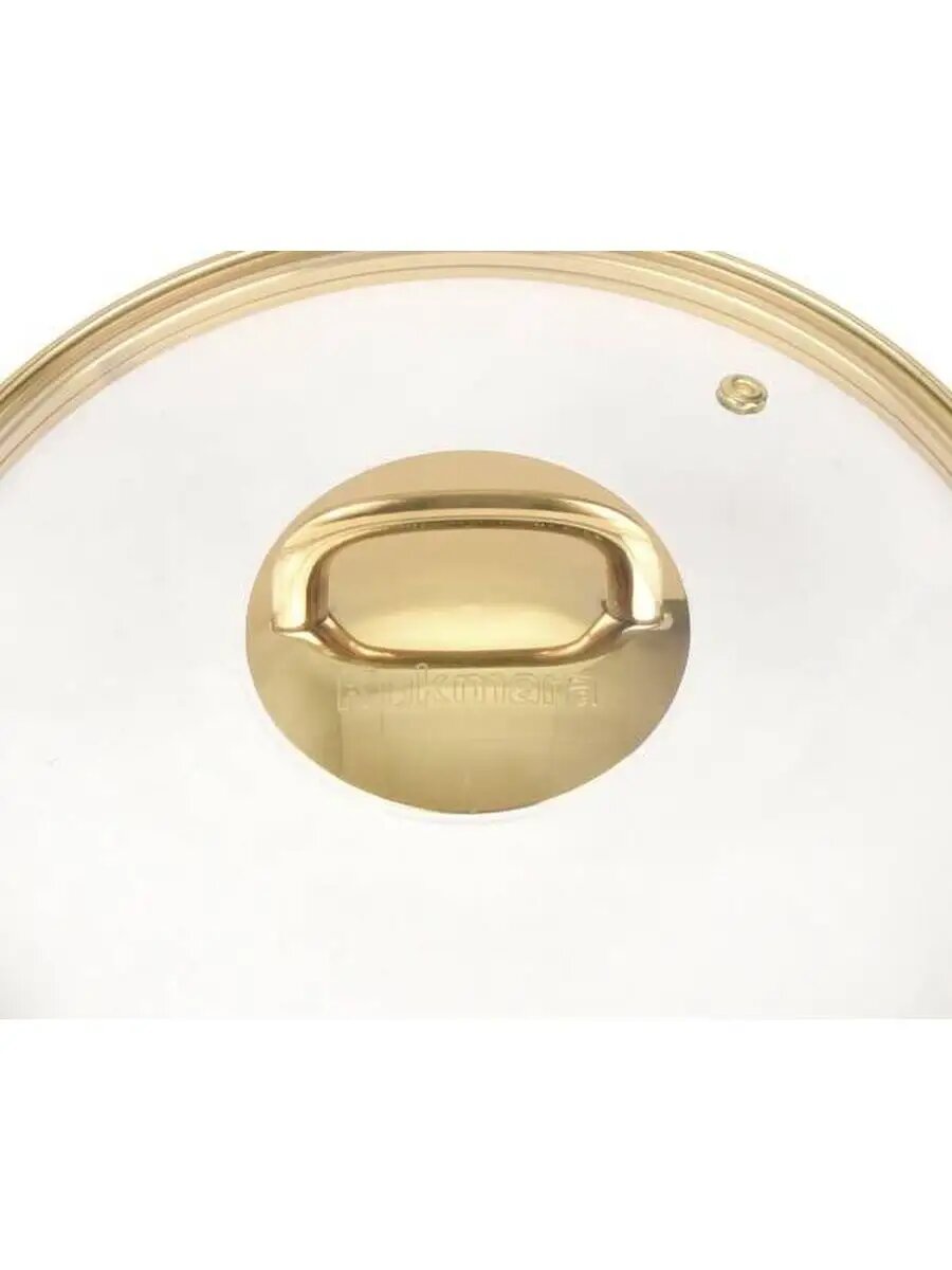 Крышка стеклянная Kukmara 240мм, с ободом и пароотводом из нерж. стали под золото и ручкой-кнопкой
