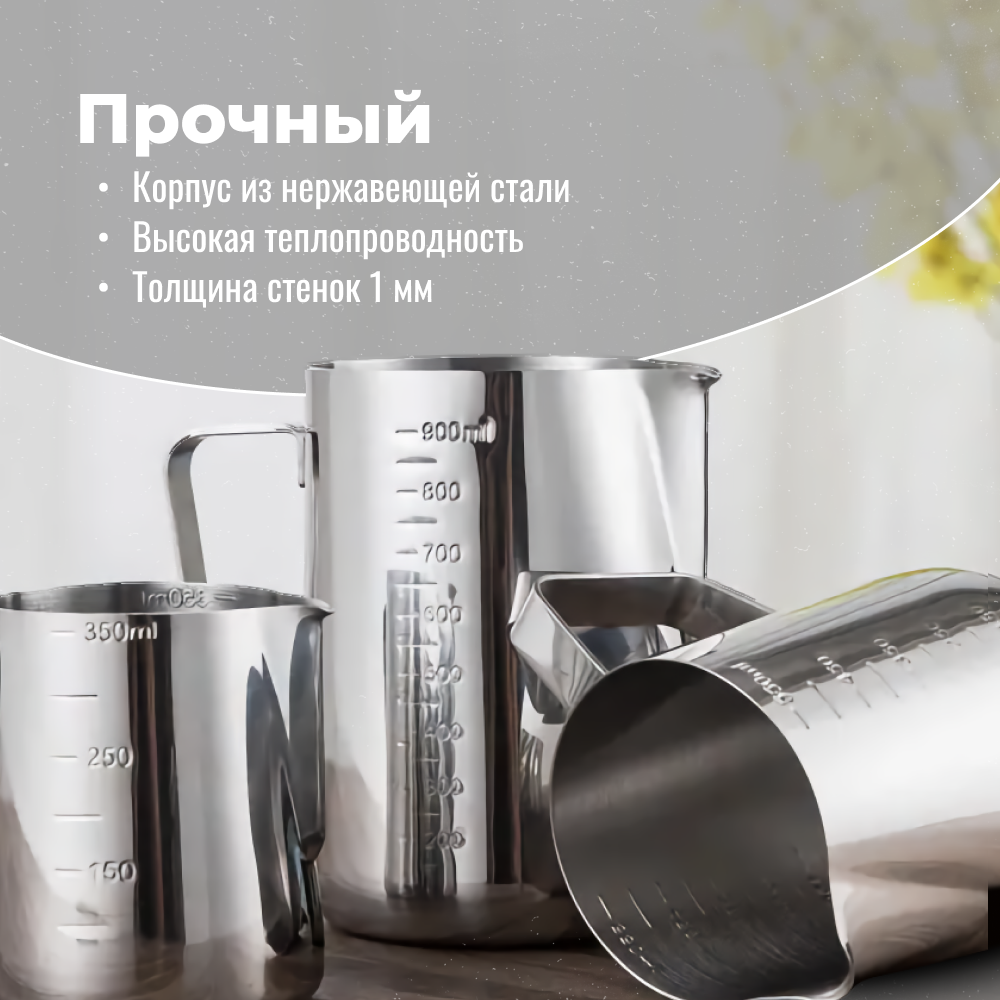 Молочник для кофемашины Homium, питчер мерный для молока из нержавеющей стали, 1000мл, цвет серебро интересное: