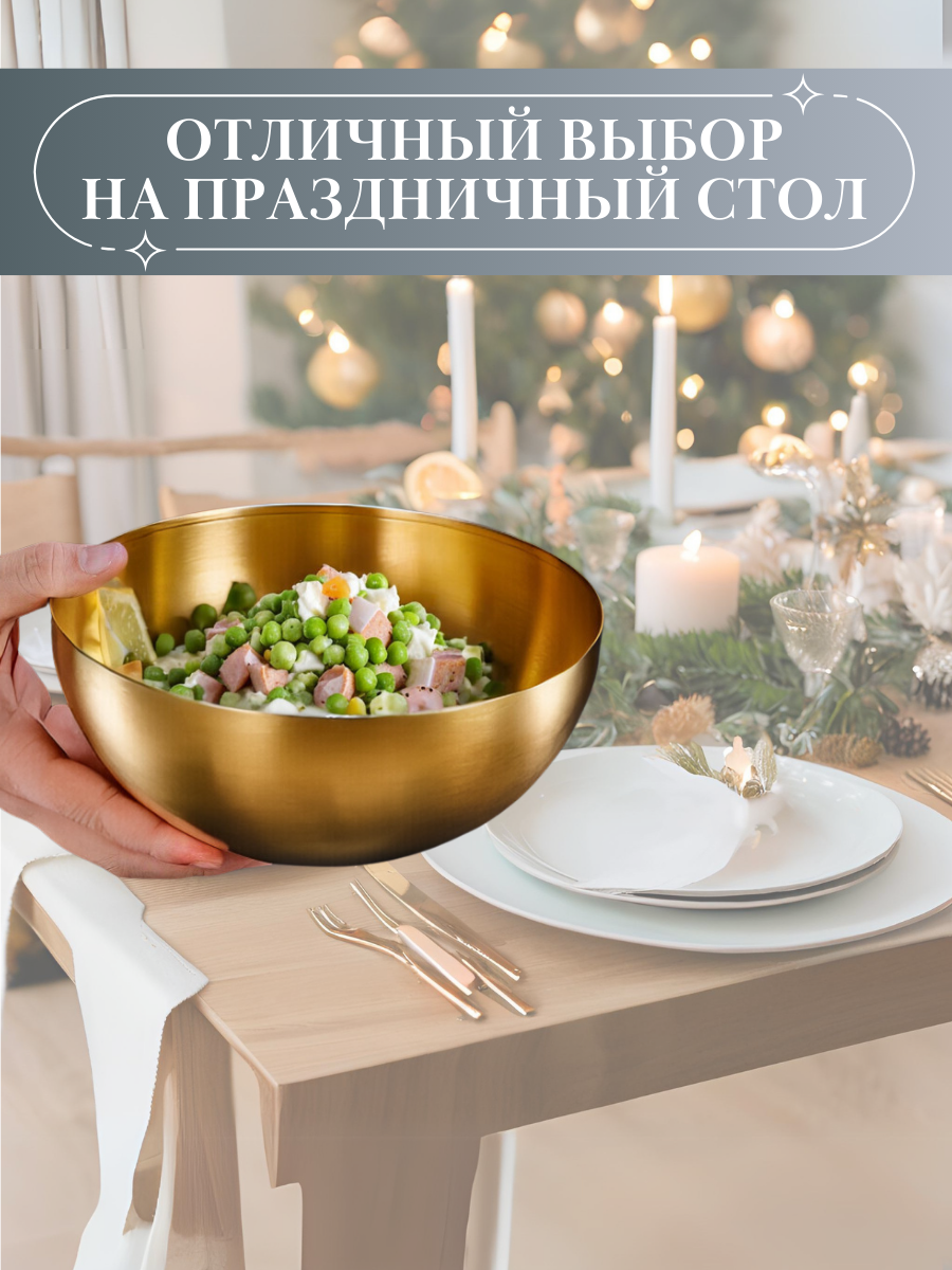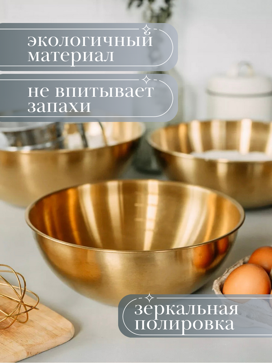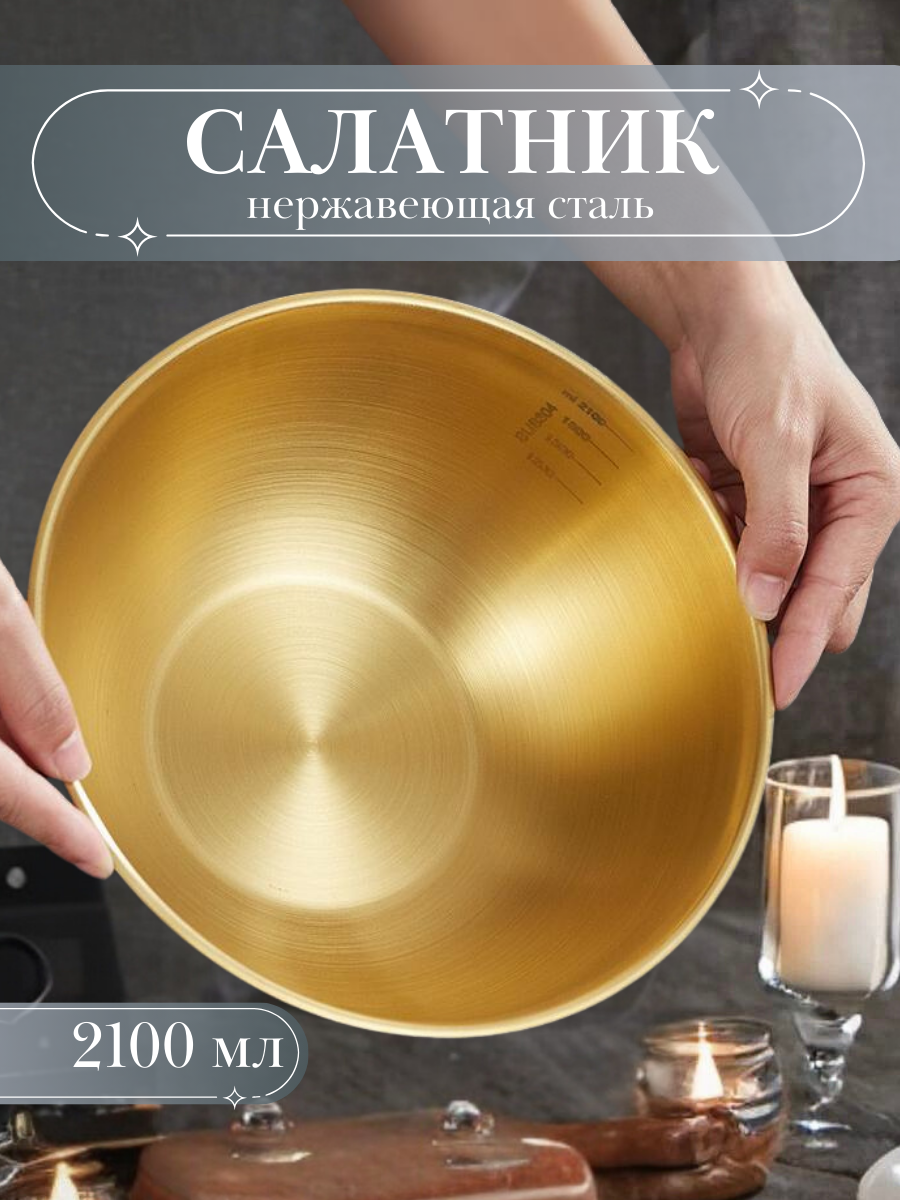Большой Золотой салатник "NeedMe_Home" из нержавеющей стали с антибактериальным покрытием 2100 мл интересное: