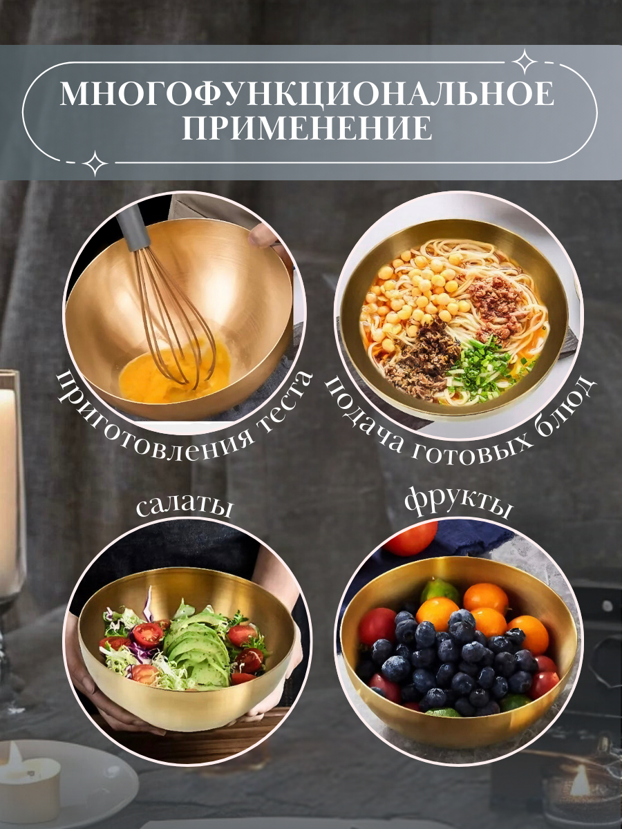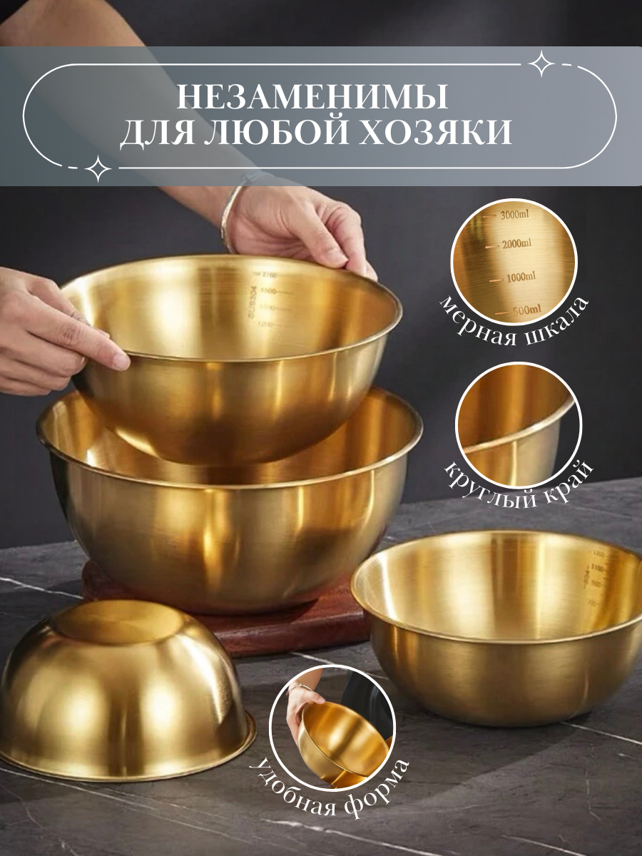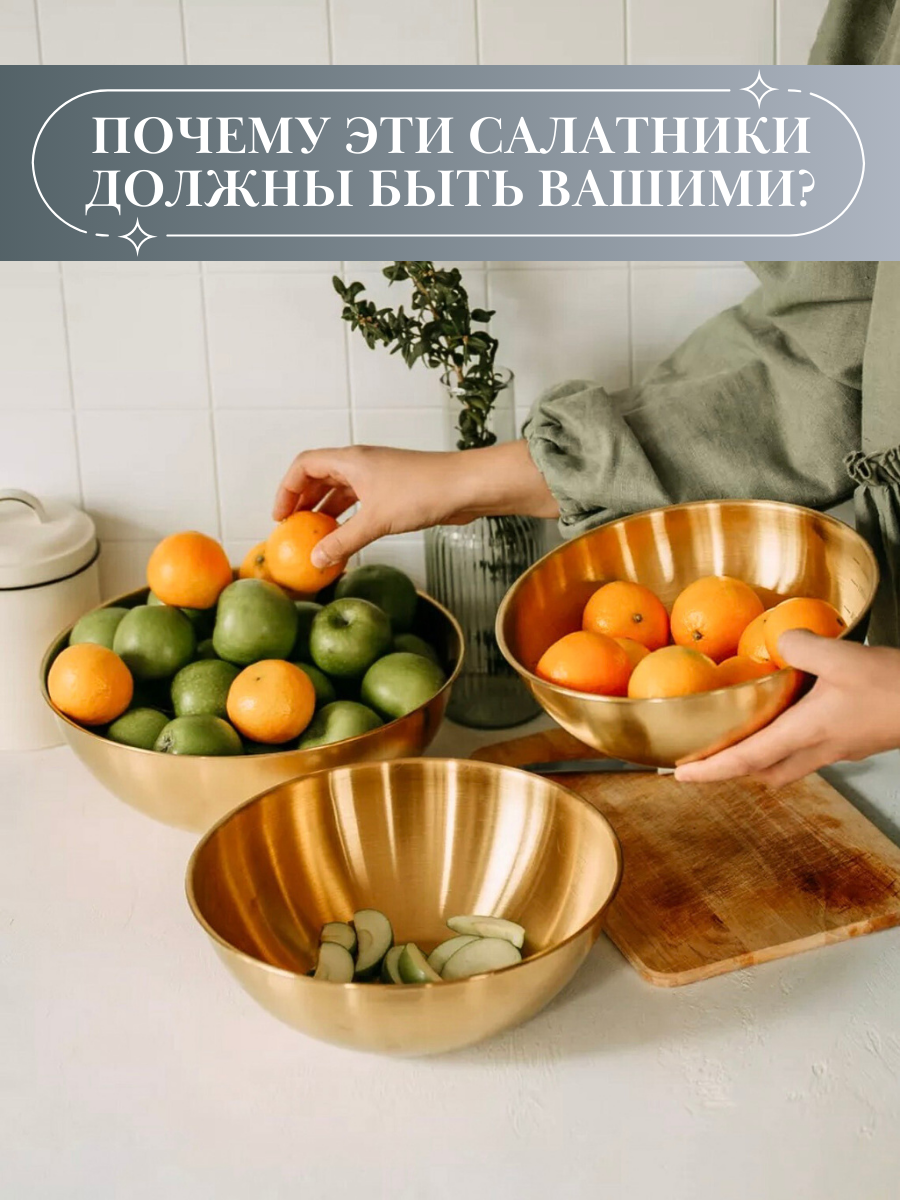 Большой Золотой салатник "NeedMe_Home" из нержавеющей стали с антибактериальным покрытием 2100 мл интересное: