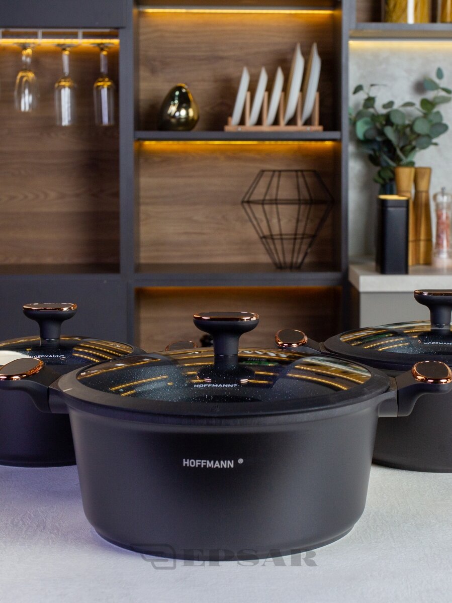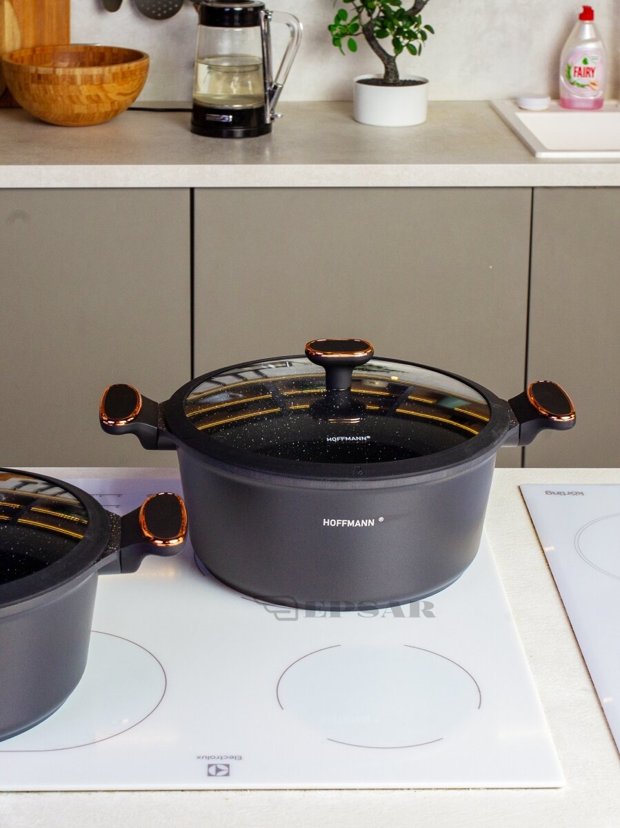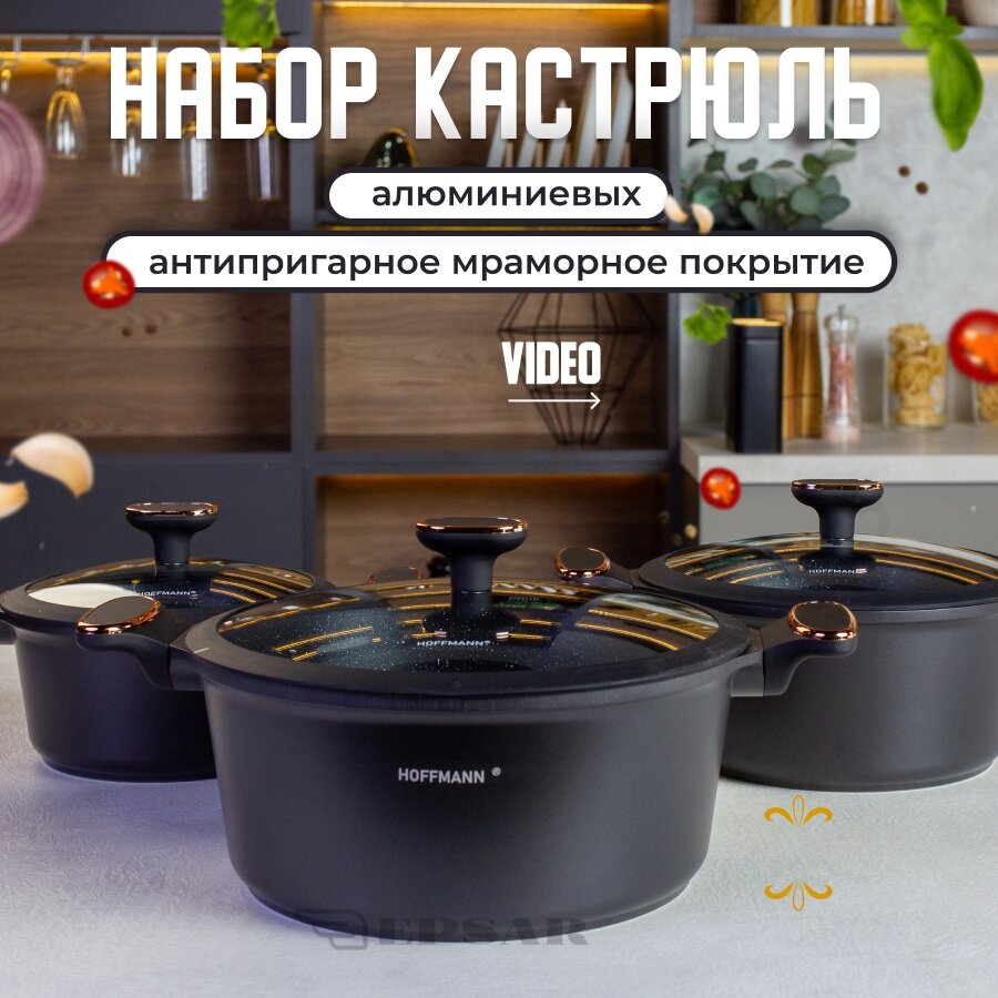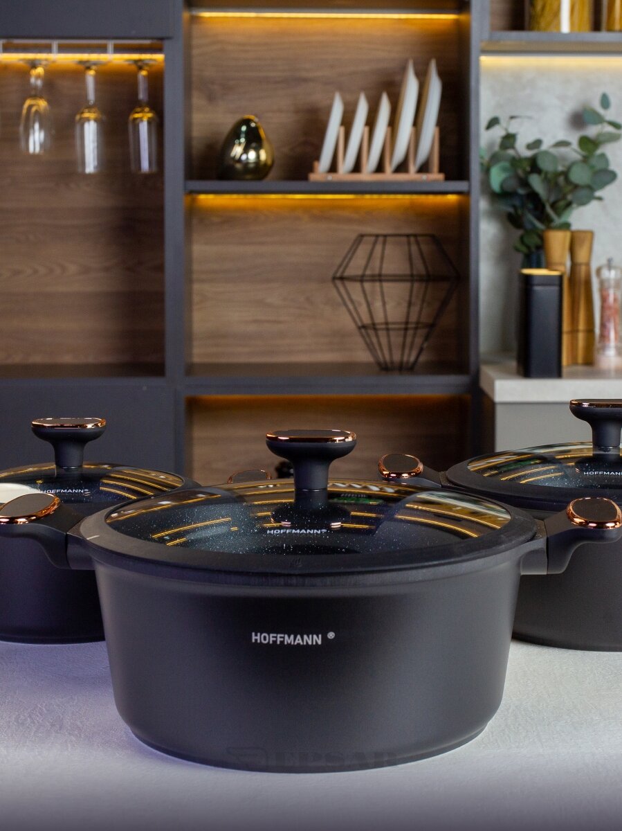 Набор из 3 кастрюль эмалированных с крышками Hoffmann для индукционной, газовой и других типов плит интересное:
