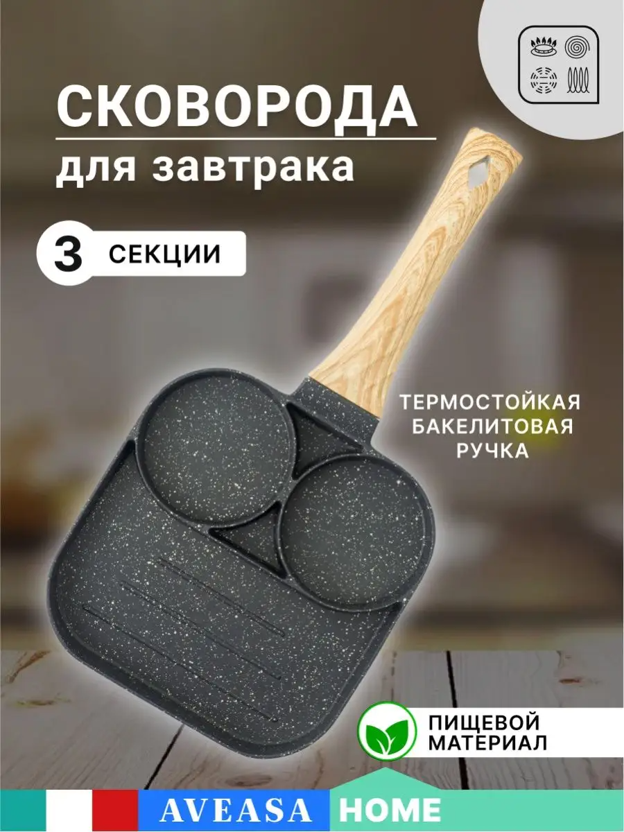 Сковорода для завтрака секционная для яиц и оладий 3 секции интересное: