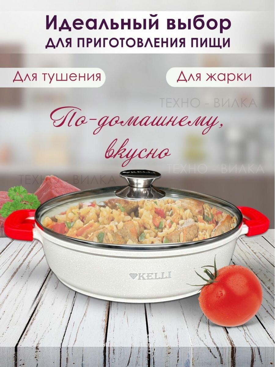 Купить Сотейник техно-вилка KELLI с крышкой, гранитное покрытие, 32 см, белый