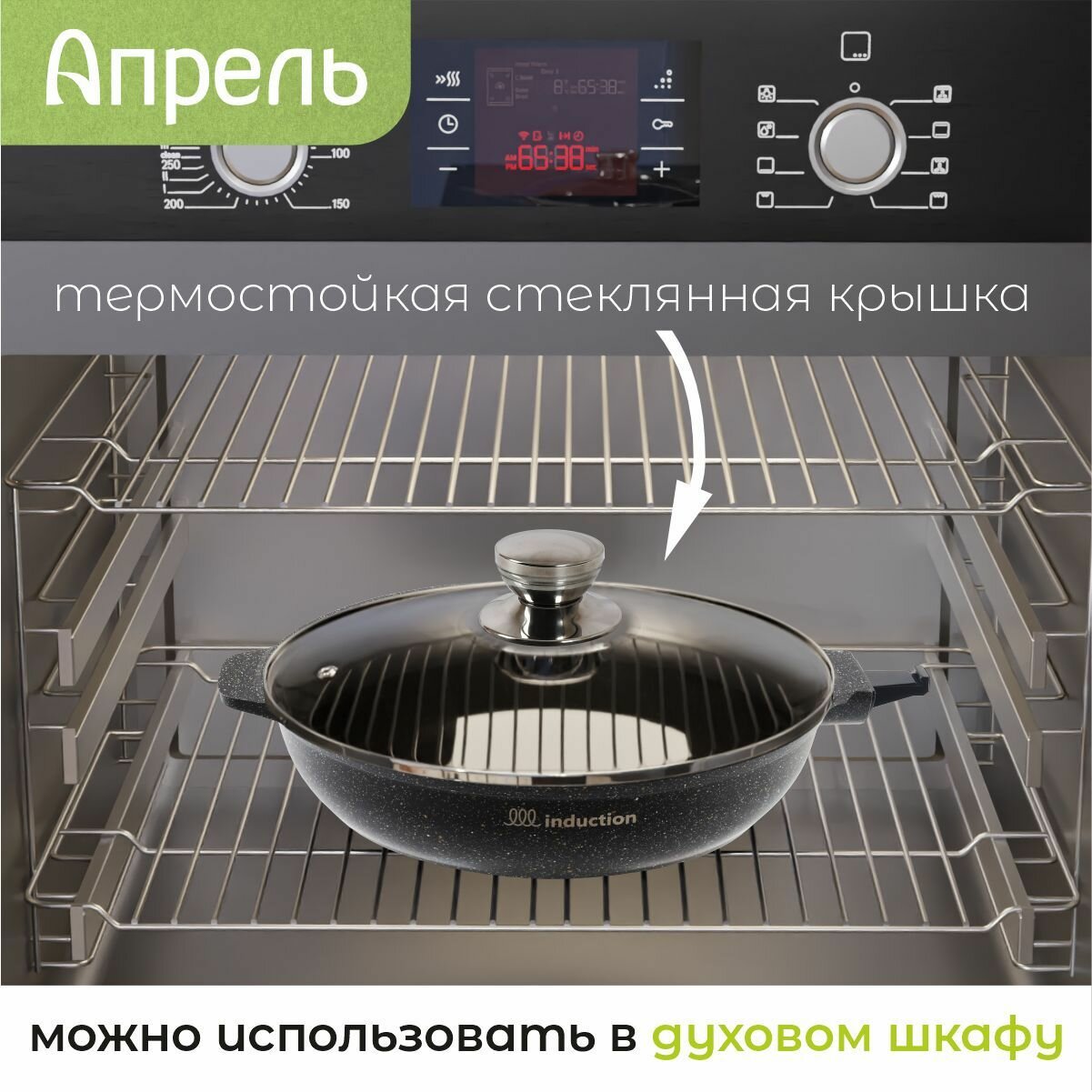 СохранитьСковорода с крышкой индукционная "Апрель" 24см с антипригарным покрытием со съемной ручкой интересное: