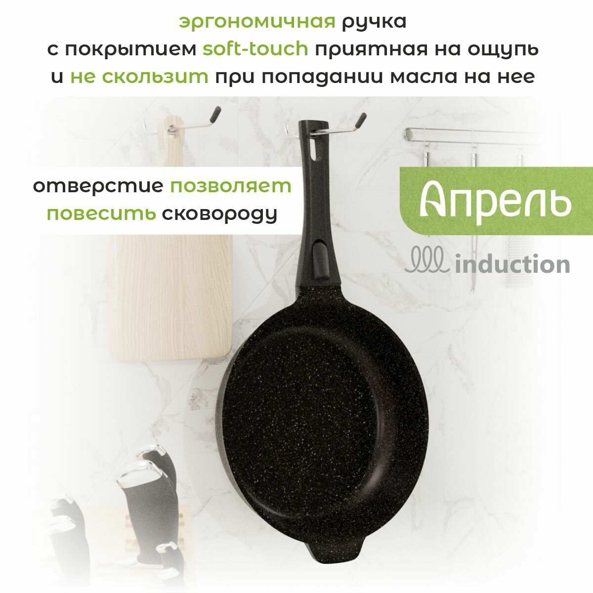 Сковорода для индукционной плиты "Апрель" 24см с антипригарным покрытием со съемной ручкой