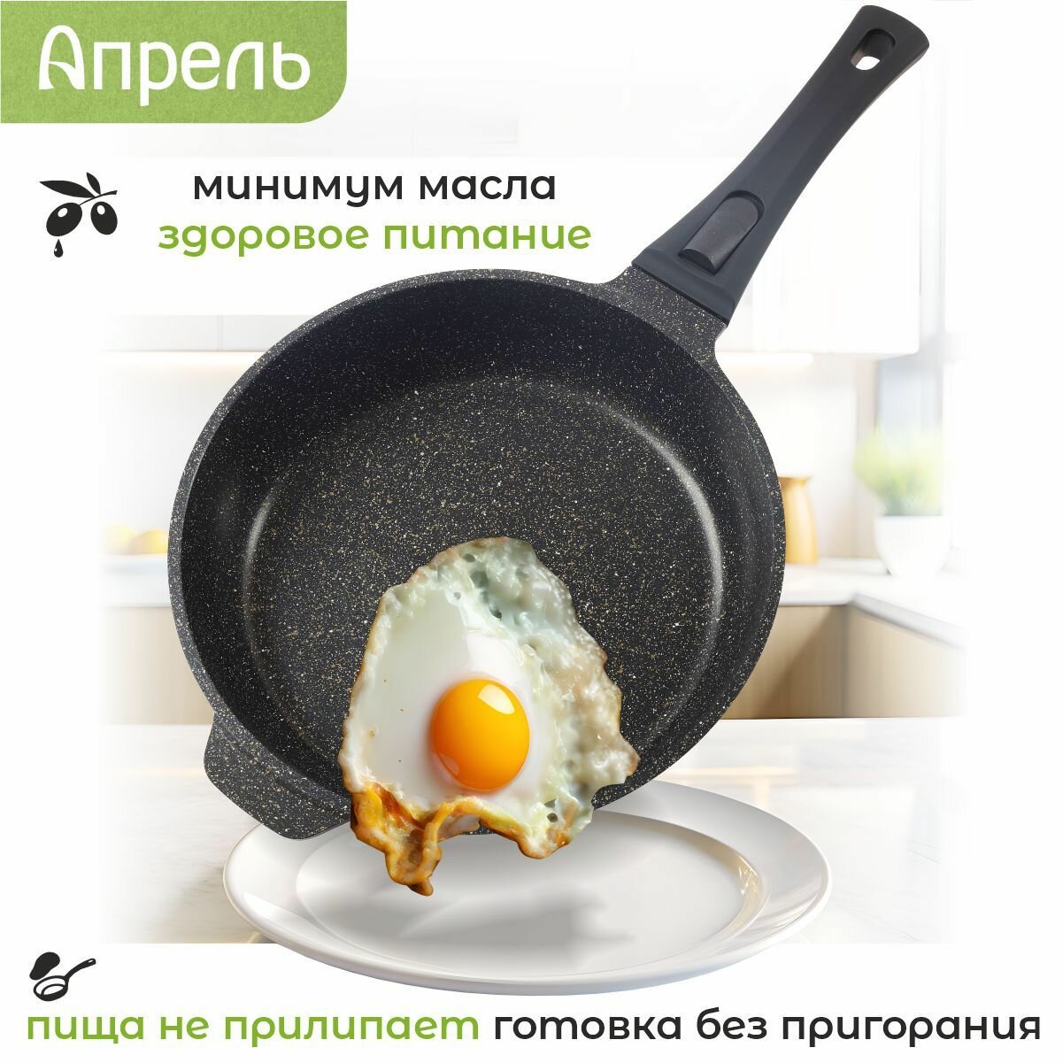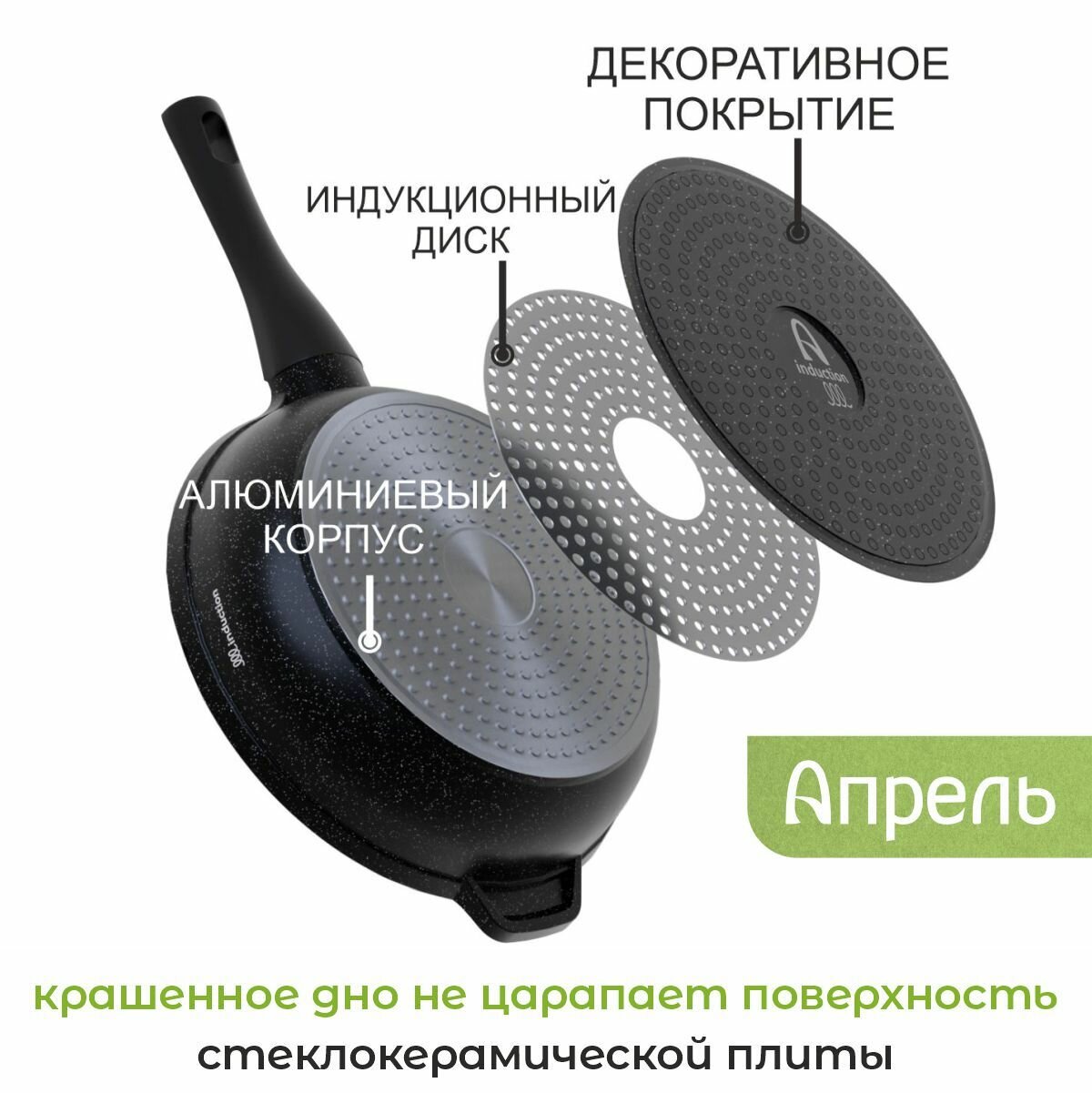 Сковорода для индукционной плиты "Апрель" 26см с антипригарным покрытием со съемной ручкой