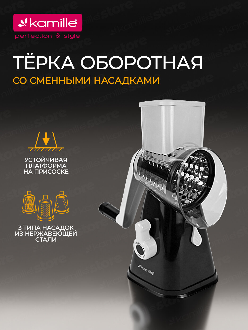 Тёрка универсальная механическая 3 в 1 Kamille KM 10107 на вакуумной присоске (10107 / черный) интересное: