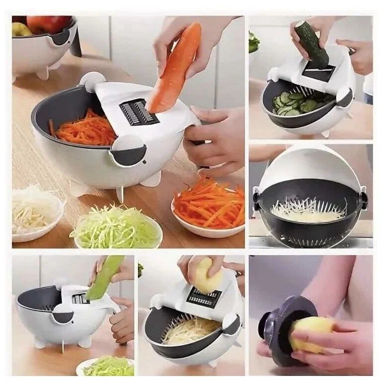 Купить Многофункциональная терка 9 в 1, овощерезка с дуршлагом-контейнером, шинковка, измельчитель