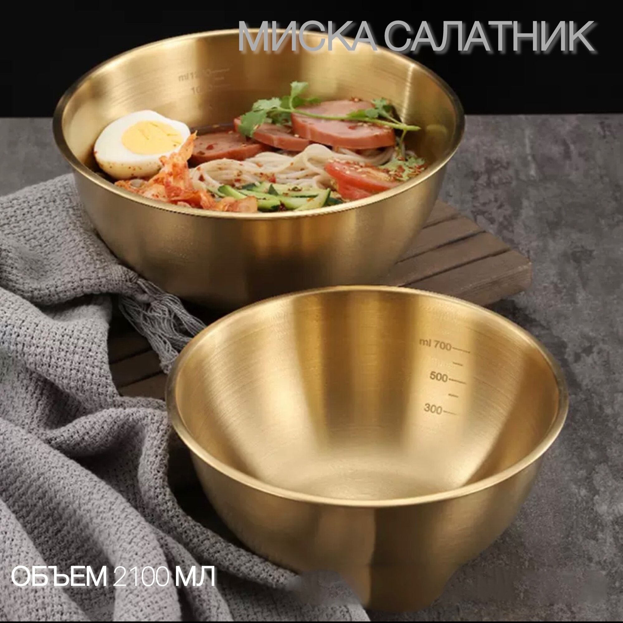 Купить Миска золотая металлическая 2,1л /салатник из нержавеющей стали золотой 2100 мл