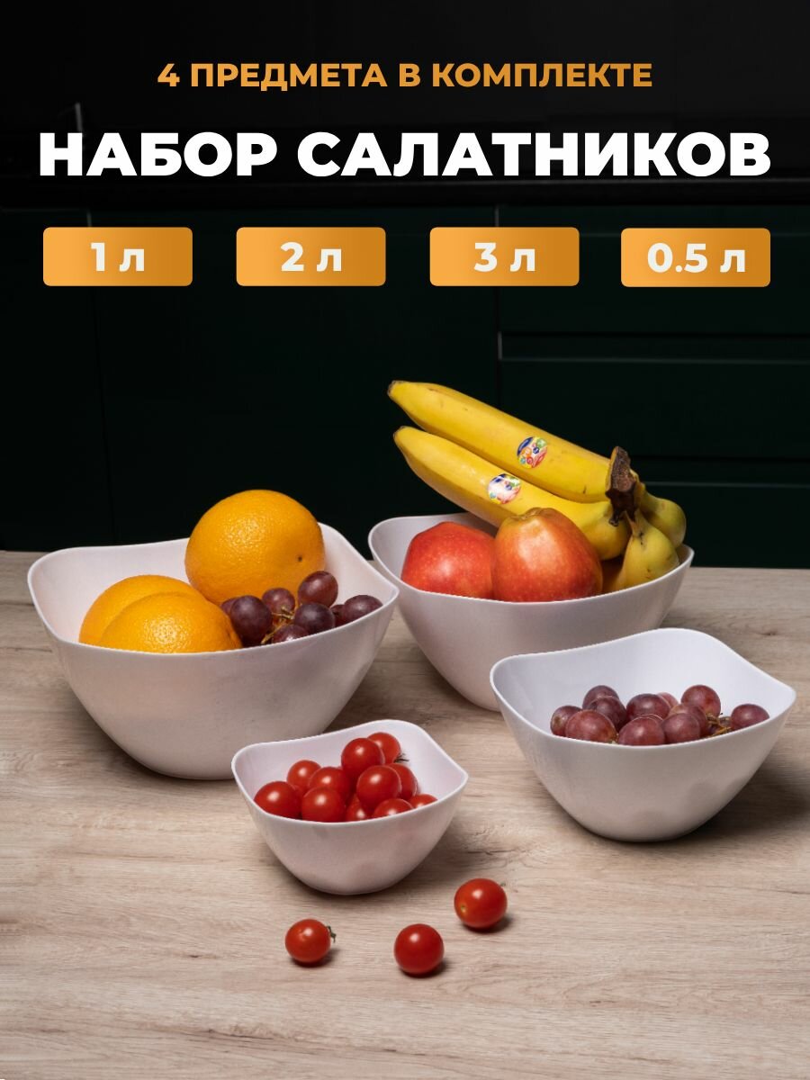 | Комплектация | салатник 0.5 л - 1 шт., салатник - 1 л 1 шт., салатник - 2 л 1 шт., салатник - 3 л 1 шт. |