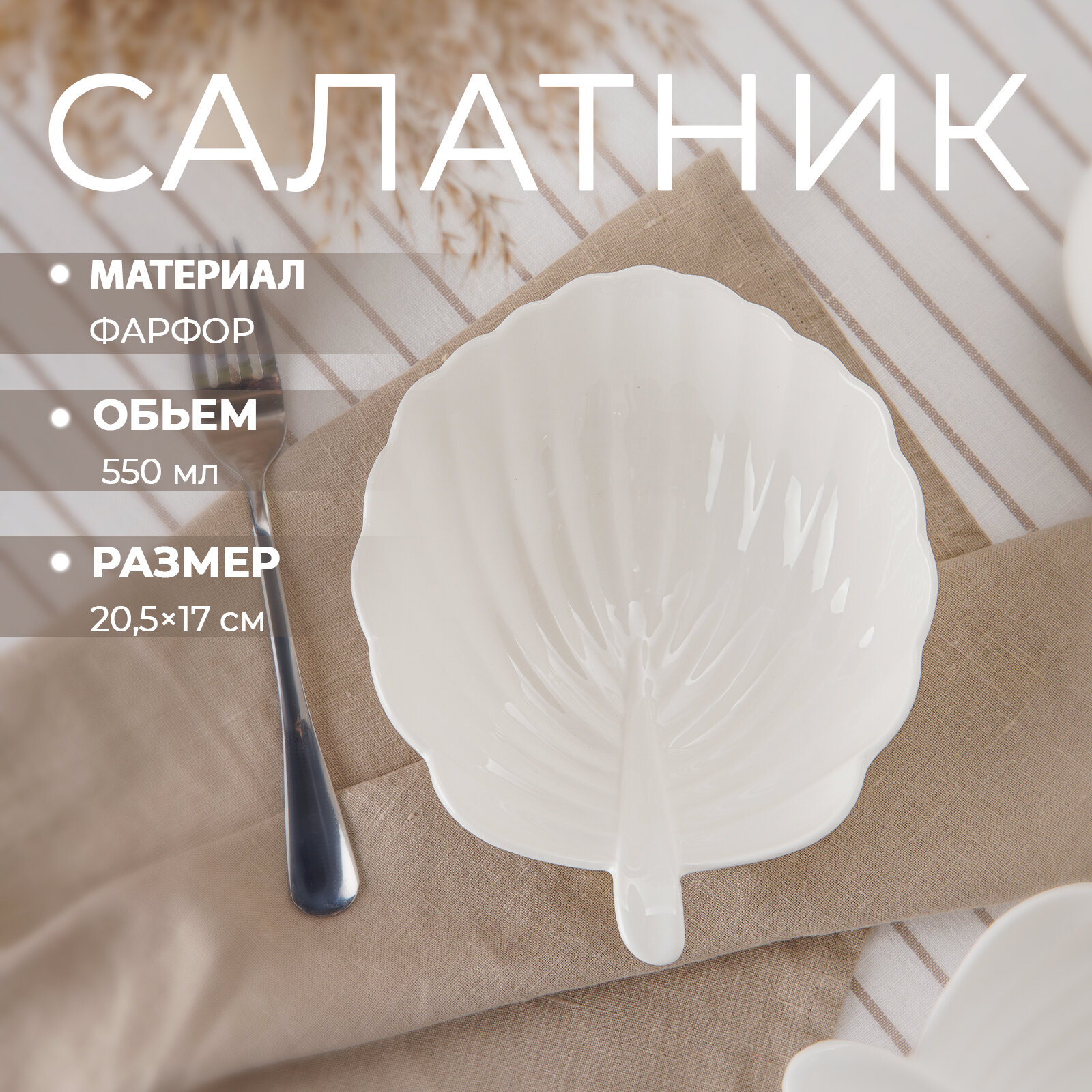 Салатник фарфоровый Magistro «Бланш. Лист», d=20,5 см, цвет белый интересное: