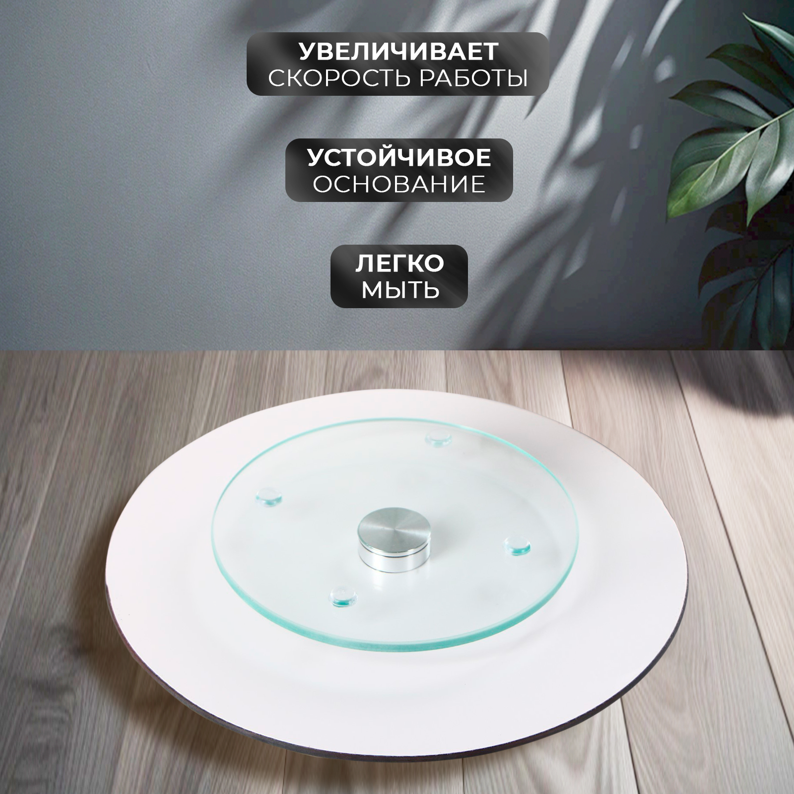 | Дополнительная информация | В связи с особенностями технологии производства, вращающийся элемент подставок расположен не идеально в центре. Это не влияет на функциональность изделия и не является браком. |