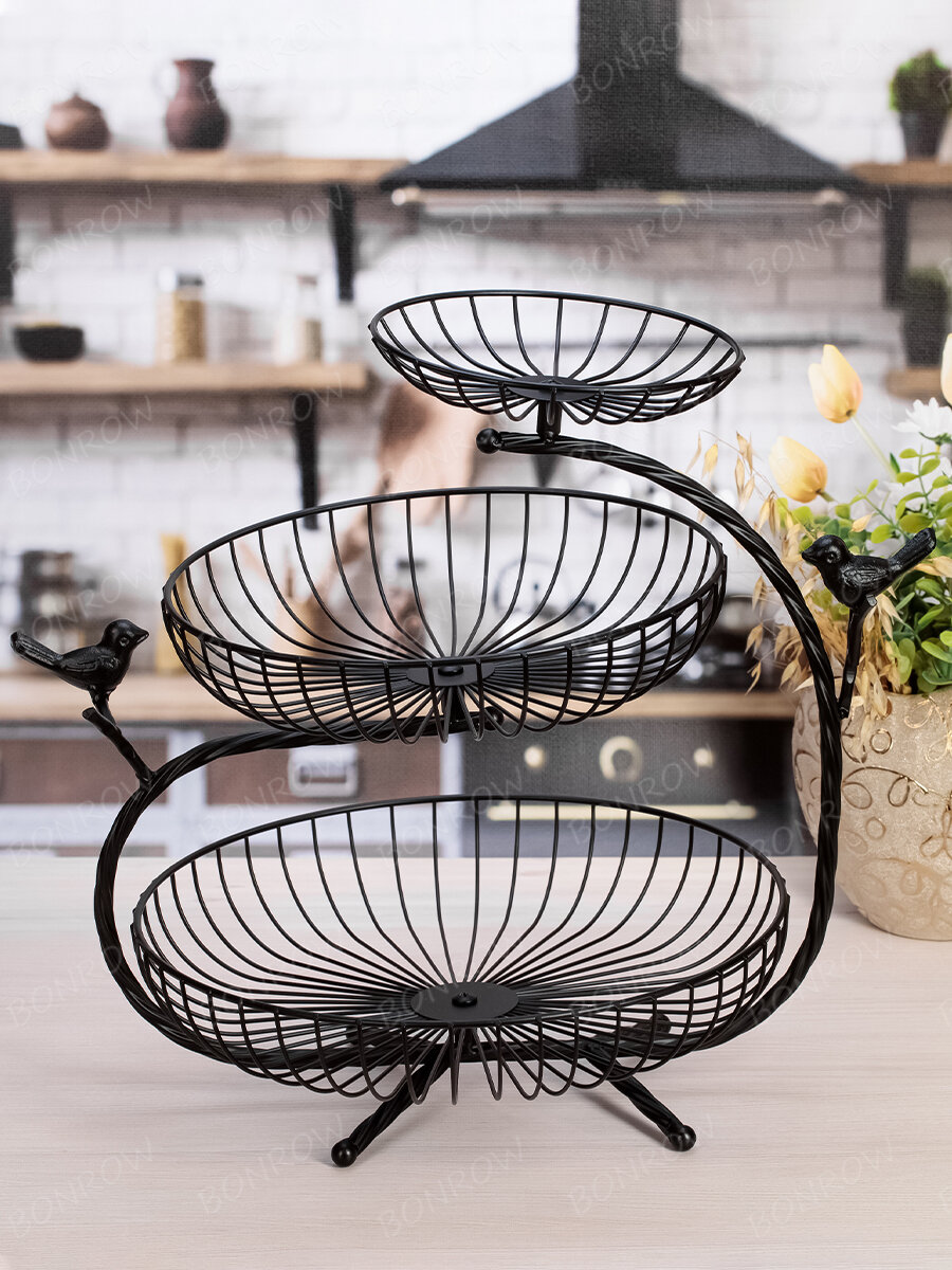 Фруктовница металлическая 3х ярусная / Трёхъярусная этажерка ваза для фруктов печенья и конфет интересное: