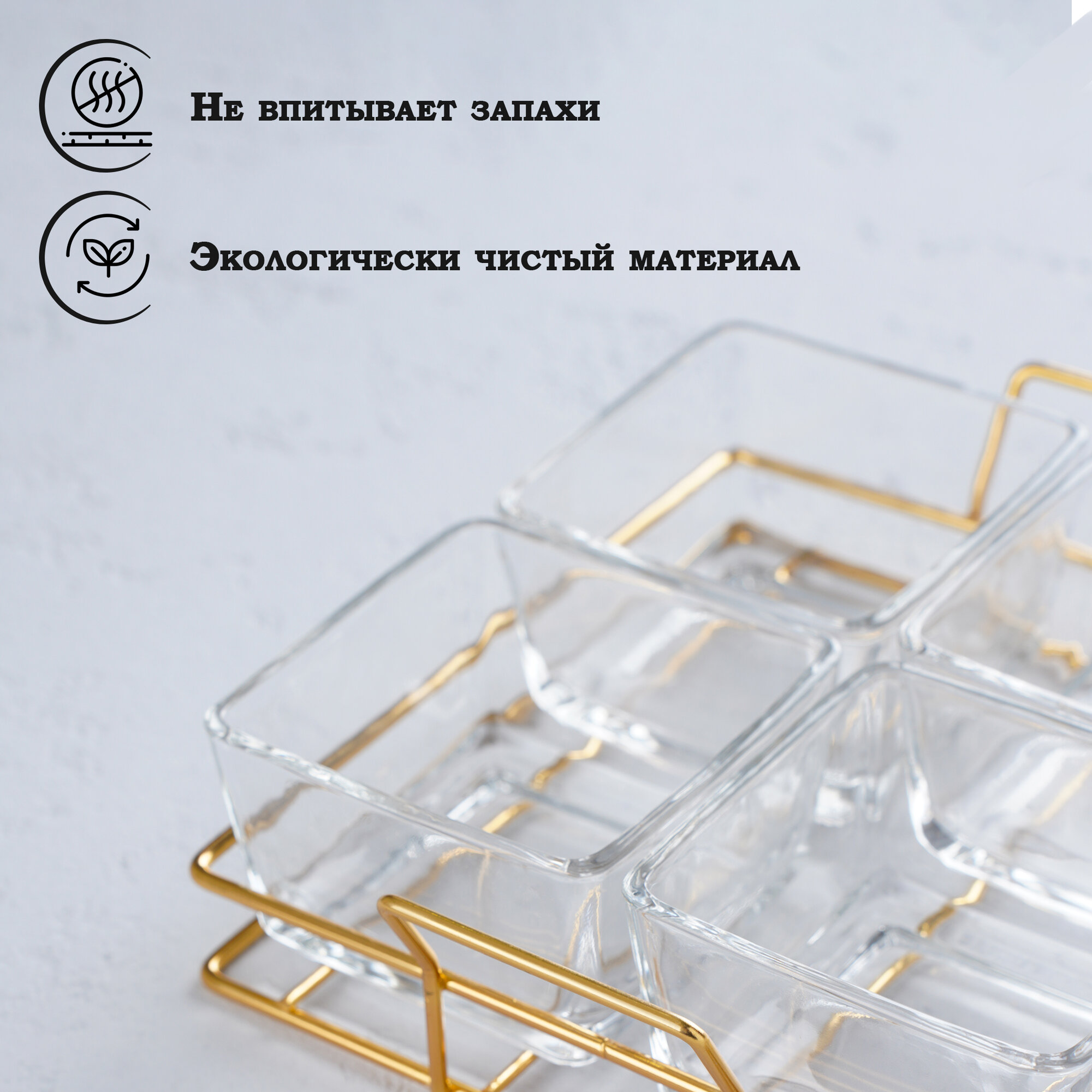 Менажница "Званый прием", 3 секции, 250 мл, 31x9x6 см, стекло, прозрачная, золотая