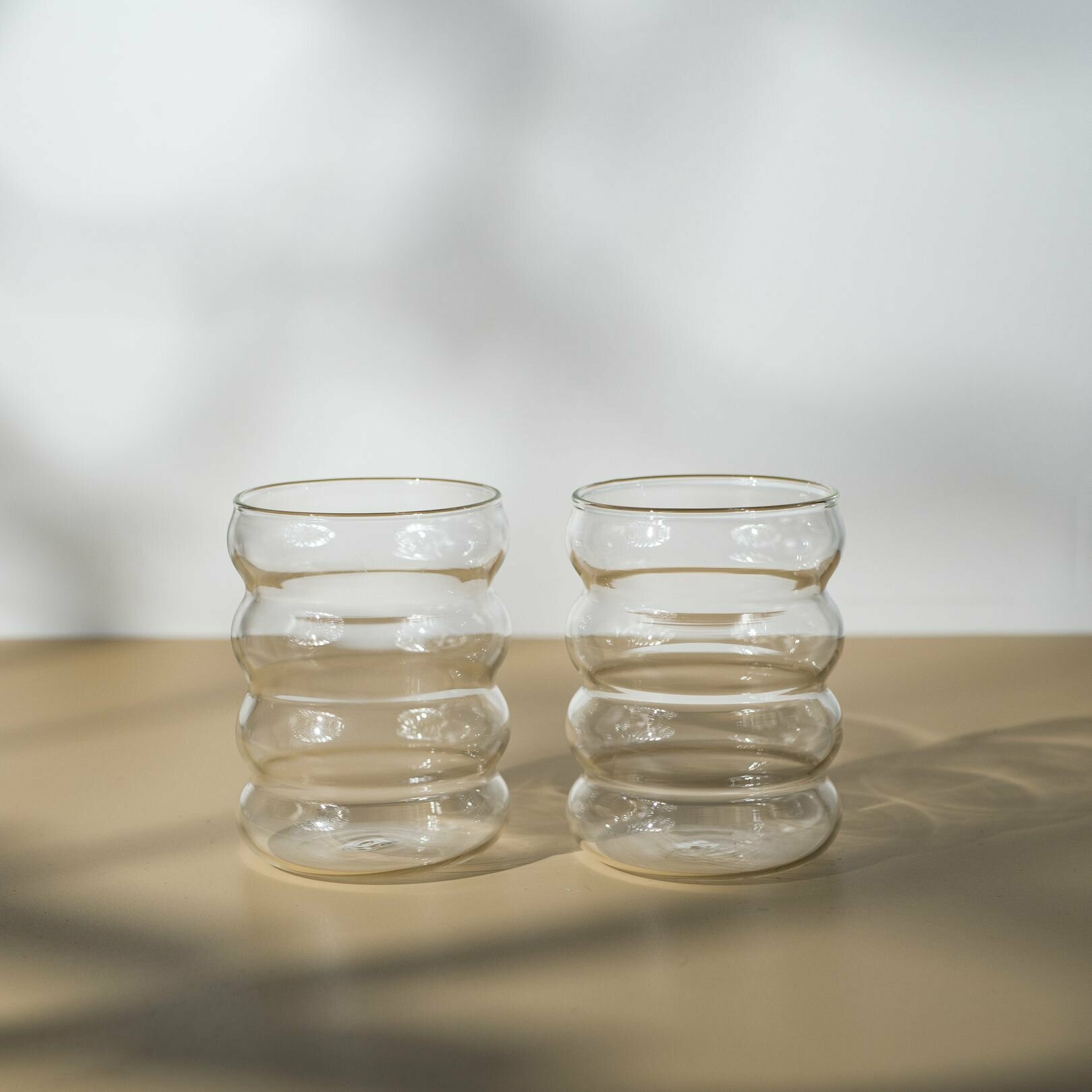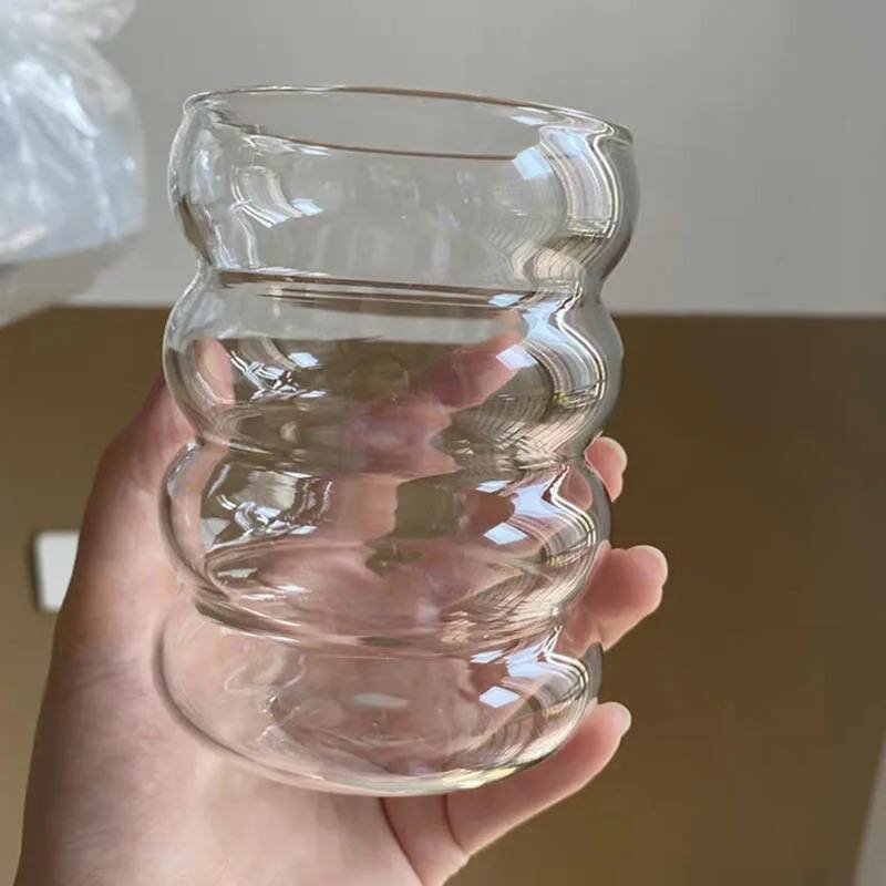 Купить Набор стеклянных волнистых стаканов для кофе, латте, чая, бокал 300 мл 2 шт прозрачный
