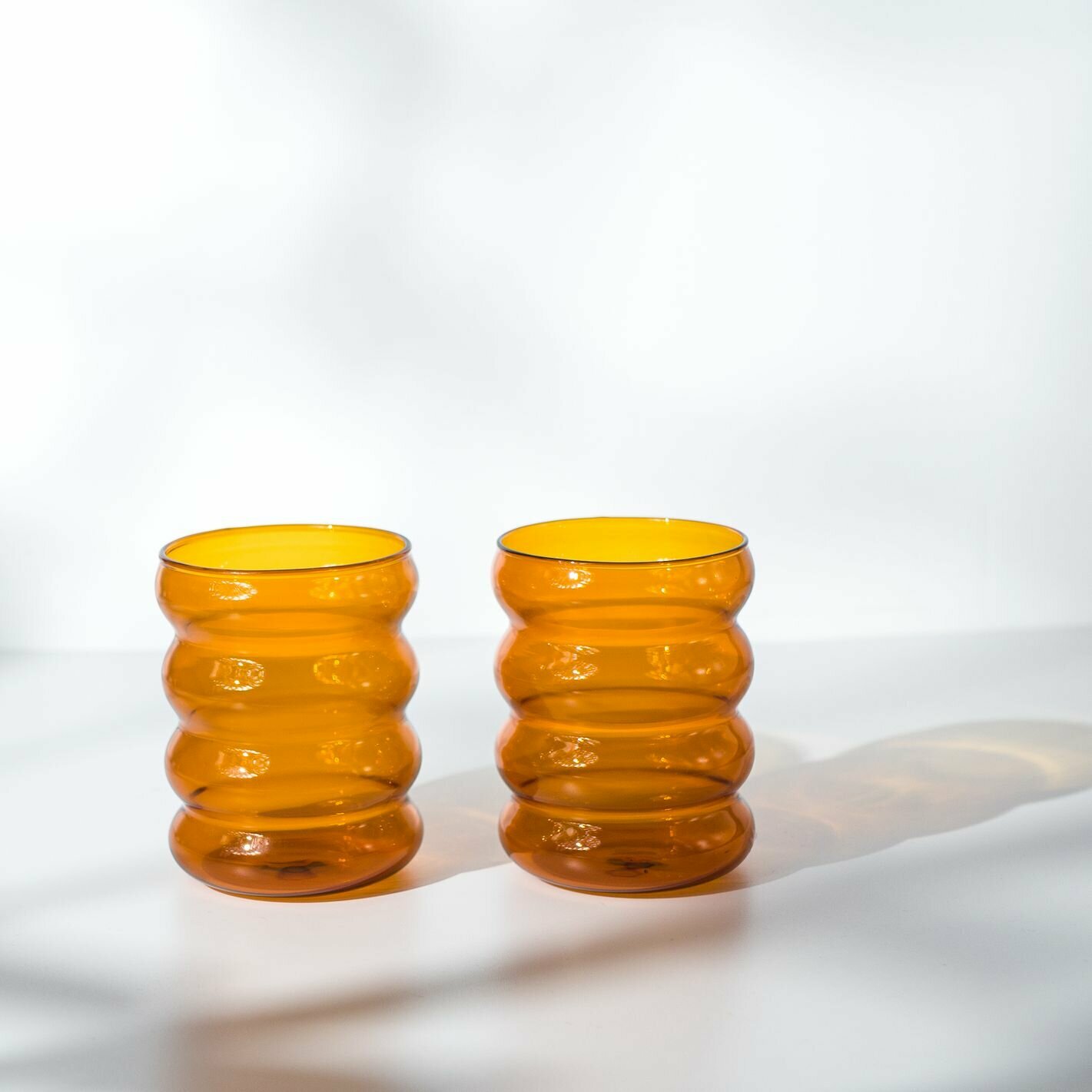 Купить Набор стеклянных волнистых стаканов для кофе, латте, чая, бокал 300 мл 2 шт янтарь