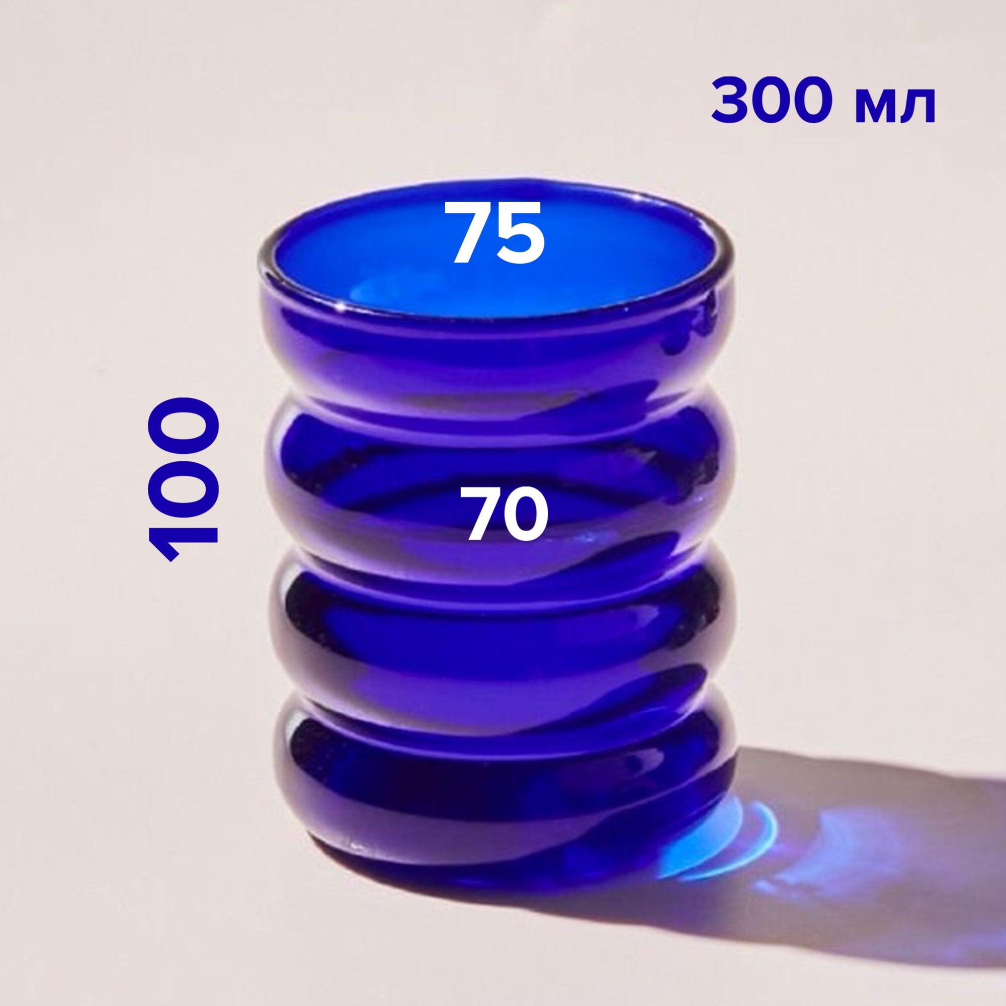 Набор стеклянных волнистых стаканов для кофе, латте, чая, бокал 300 мл 2 шт синий