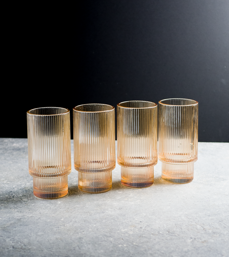 Купить Стаканы стеклянные ребристые для холодных и горячих напитков, латте, чая, воды, лимонада, 300 мл цвет янтарь 4 шт в комплекте