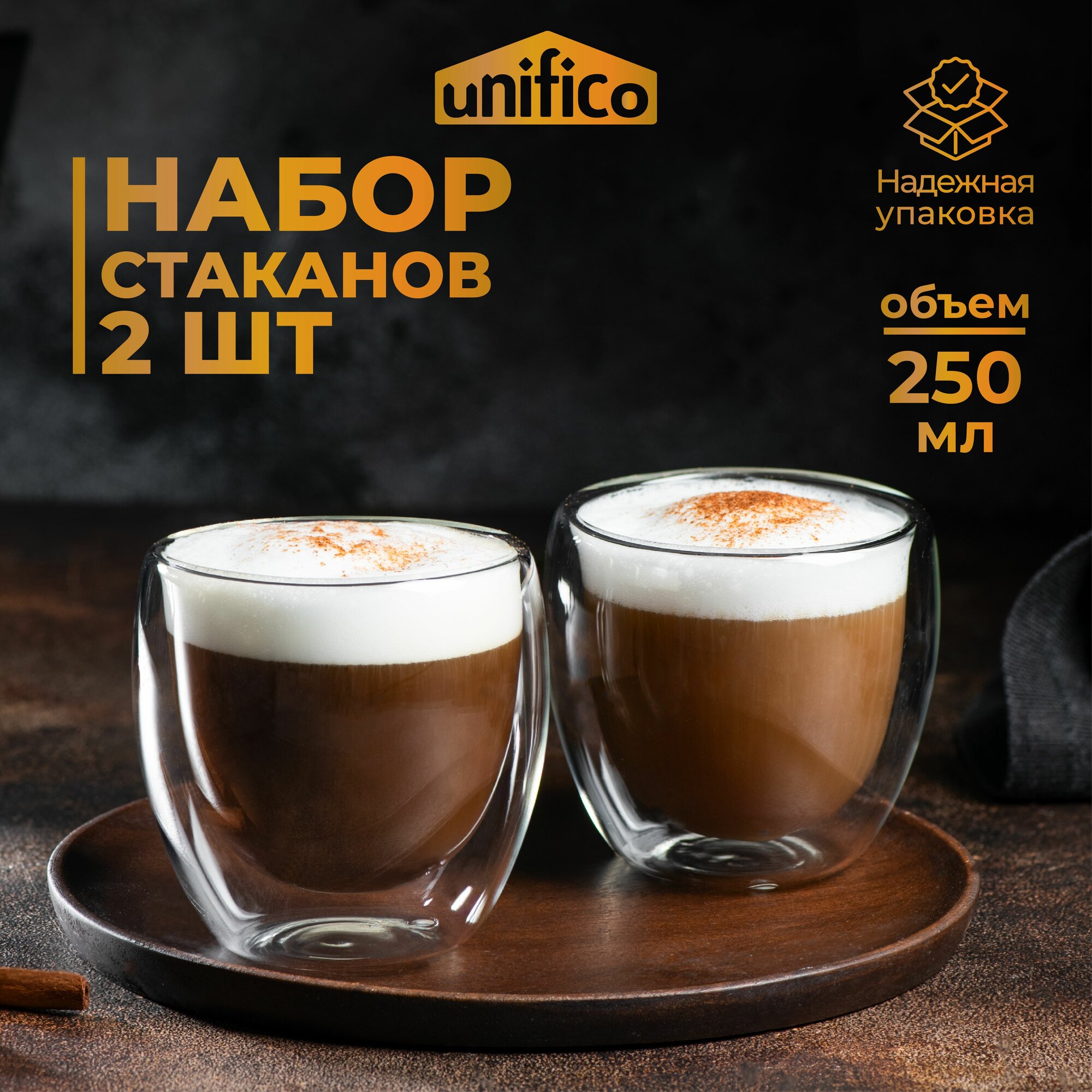 Купить Набор стаканов с двойными стенками из боросиликатного стекла Unifico 250 мл (2 шт)