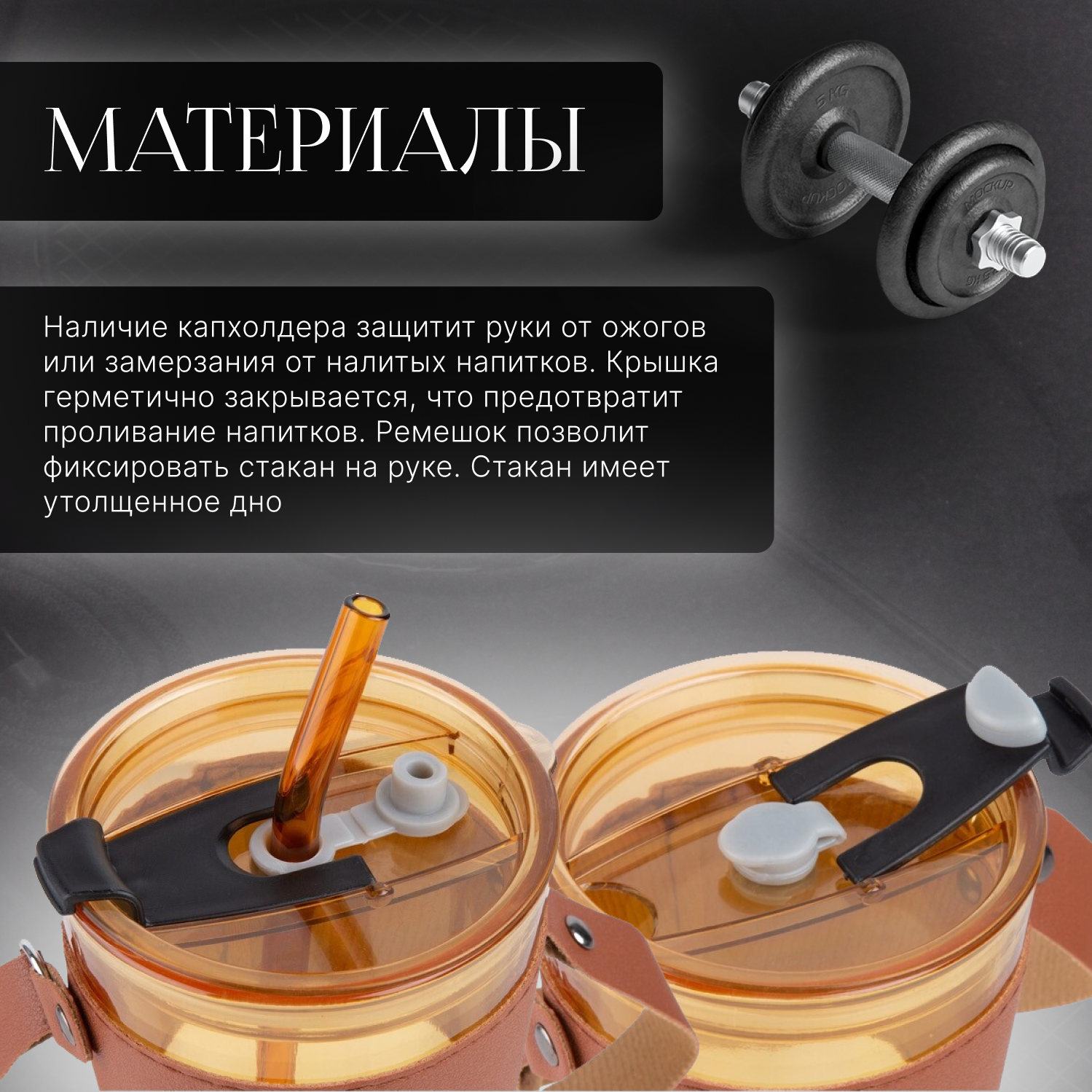 Стакан с трубочкой, кожаным кейсом и ремешком для напитков PERFECTO LINEA Amber 450 мл (31-450201)