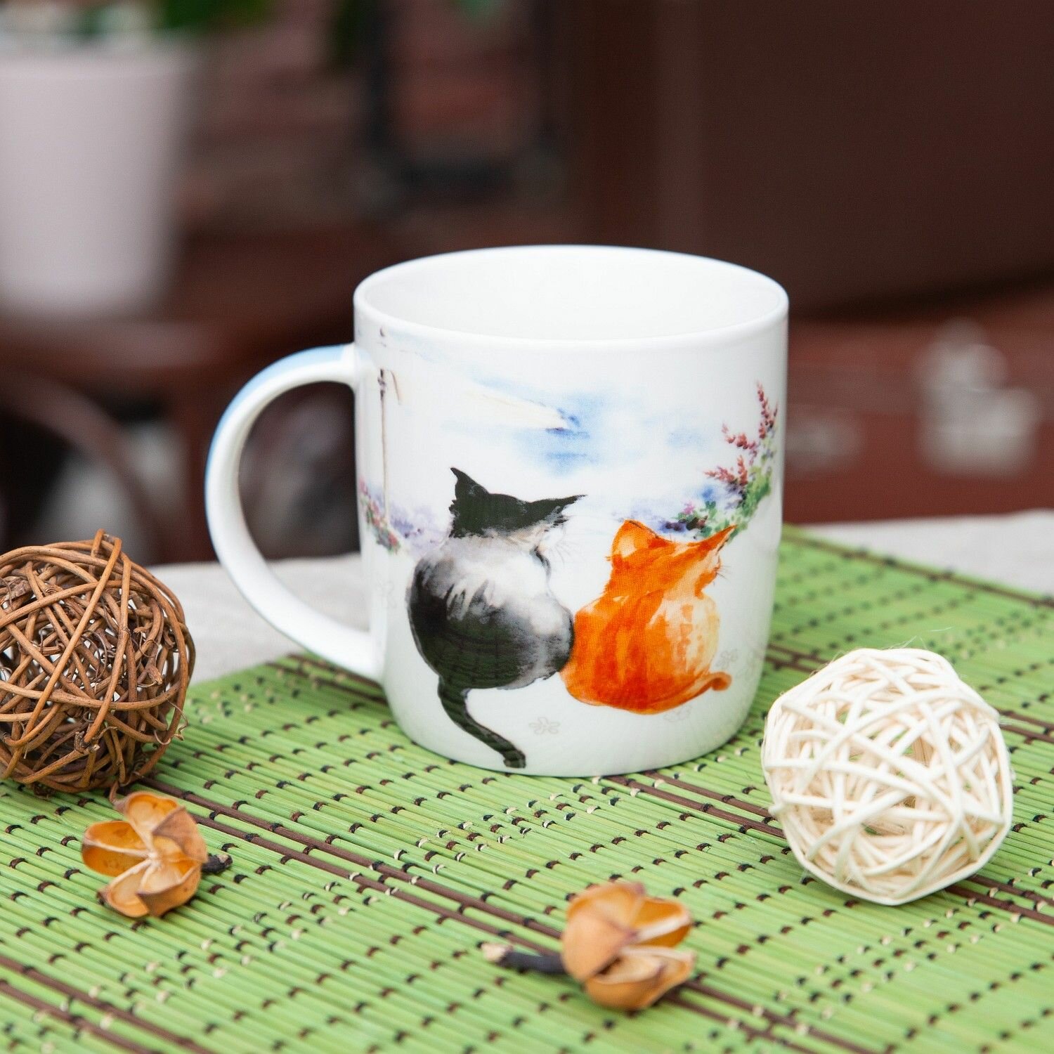 Кружка фарфоровая Kingray, для чая и кофе, 390 мл, с рисунком Кошки интересное: