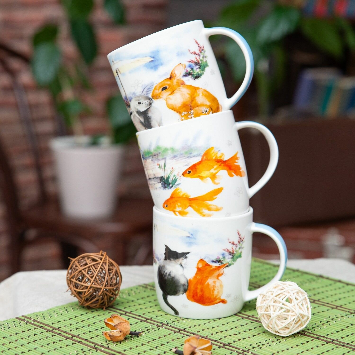 Купить Кружка фарфоровая Kingray, для чая и кофе, 390 мл, с рисунком Кошки