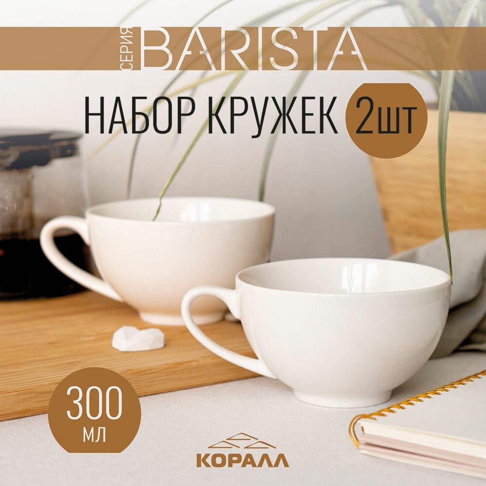 СохранитьНабор кружек 2шт 300 мл фарфор Barista кружка большая белая чашка для чая кофе какао интересное:
