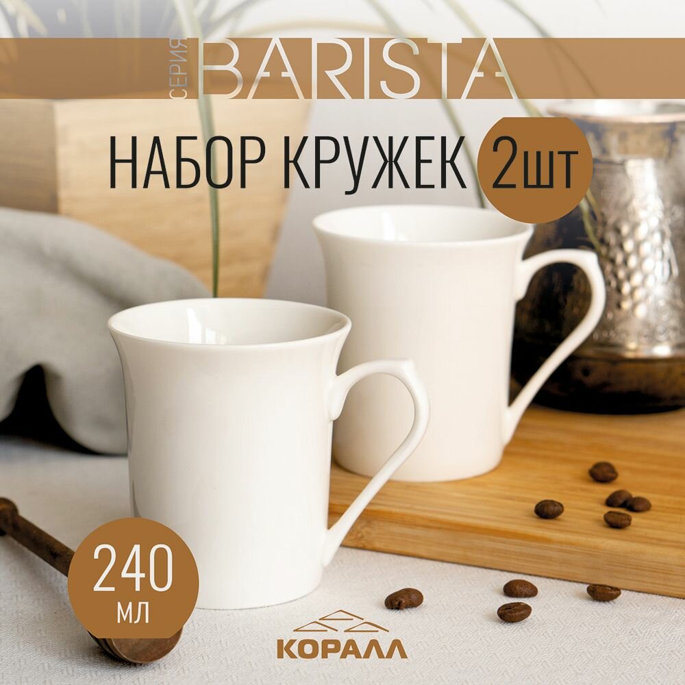 СохранитьНабор кружек 2шт 240мл фарфор "Barista" кружка большая белая чашка для чая кофе какао интересное: