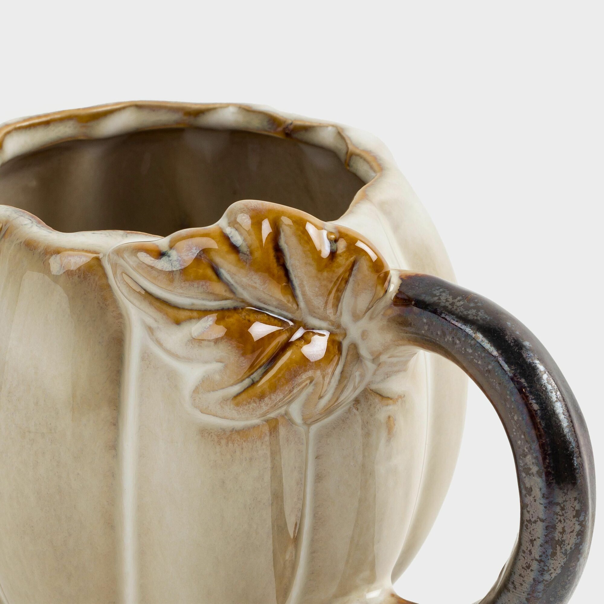 Кружка, 560 мл, керамика, молочно-коричневая, Тыква с листом, Pumpkin velir интересное: