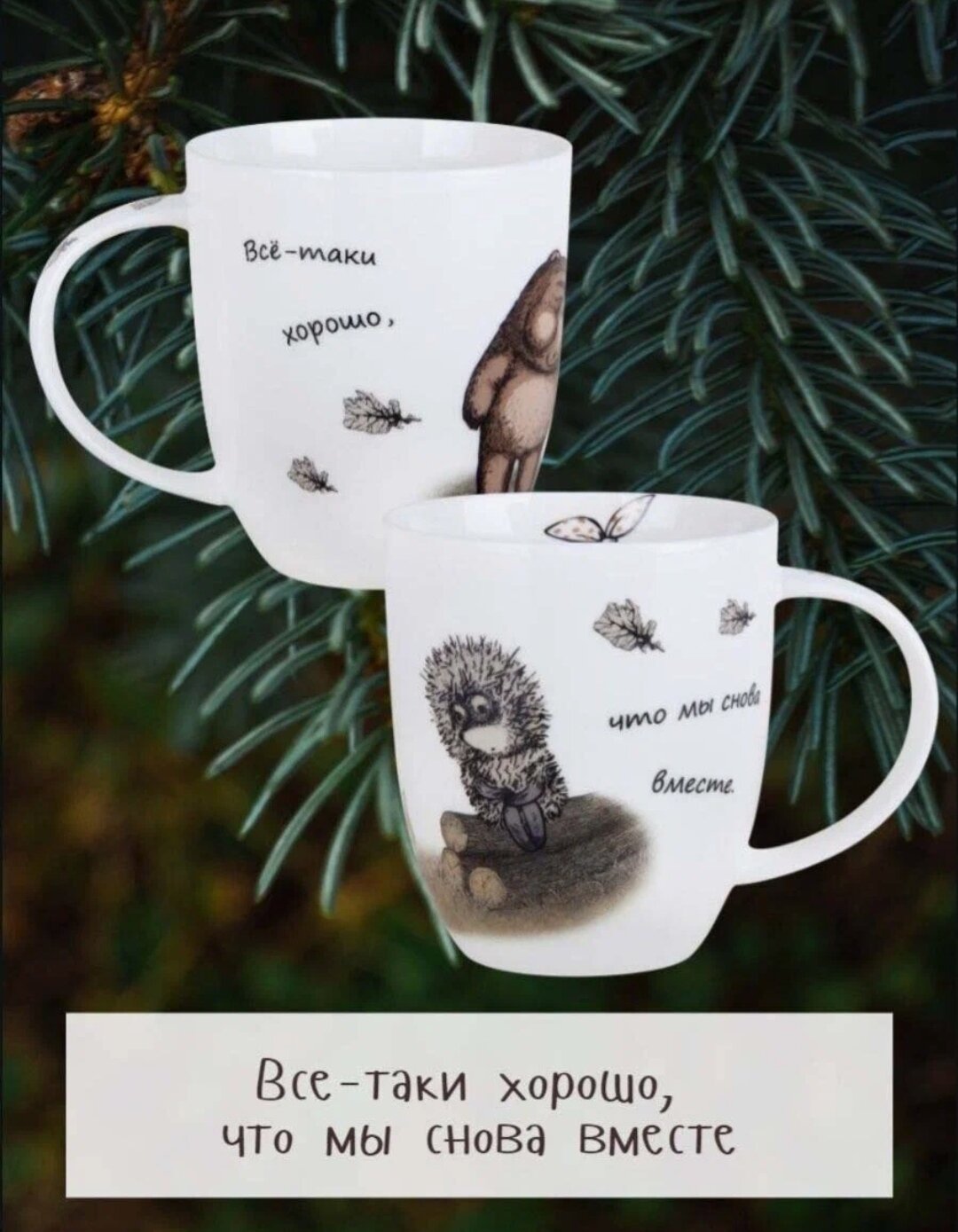 Кружка для чая Quinsberry Ежик в тумане 420 мл, "Хорошо что мы снова вместе", фарфор белая в подарочной упаковке интересное: