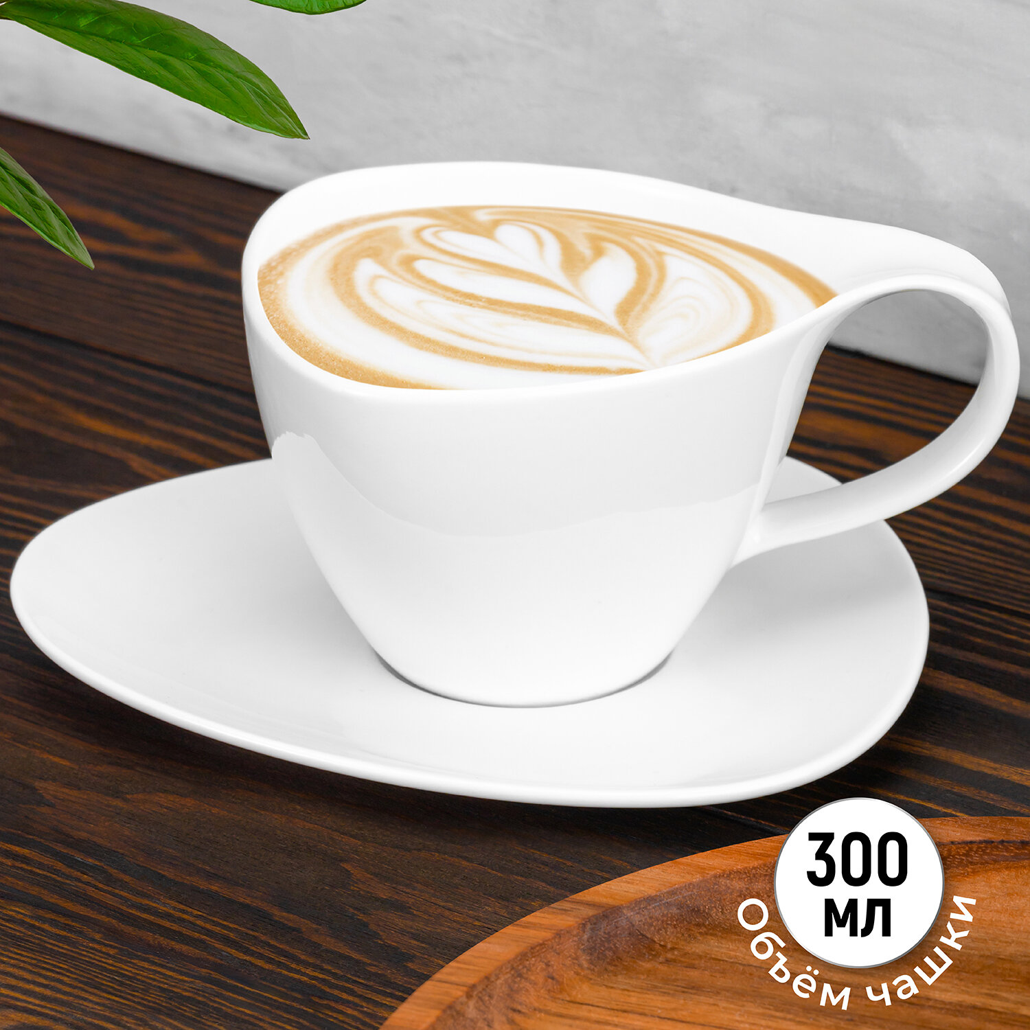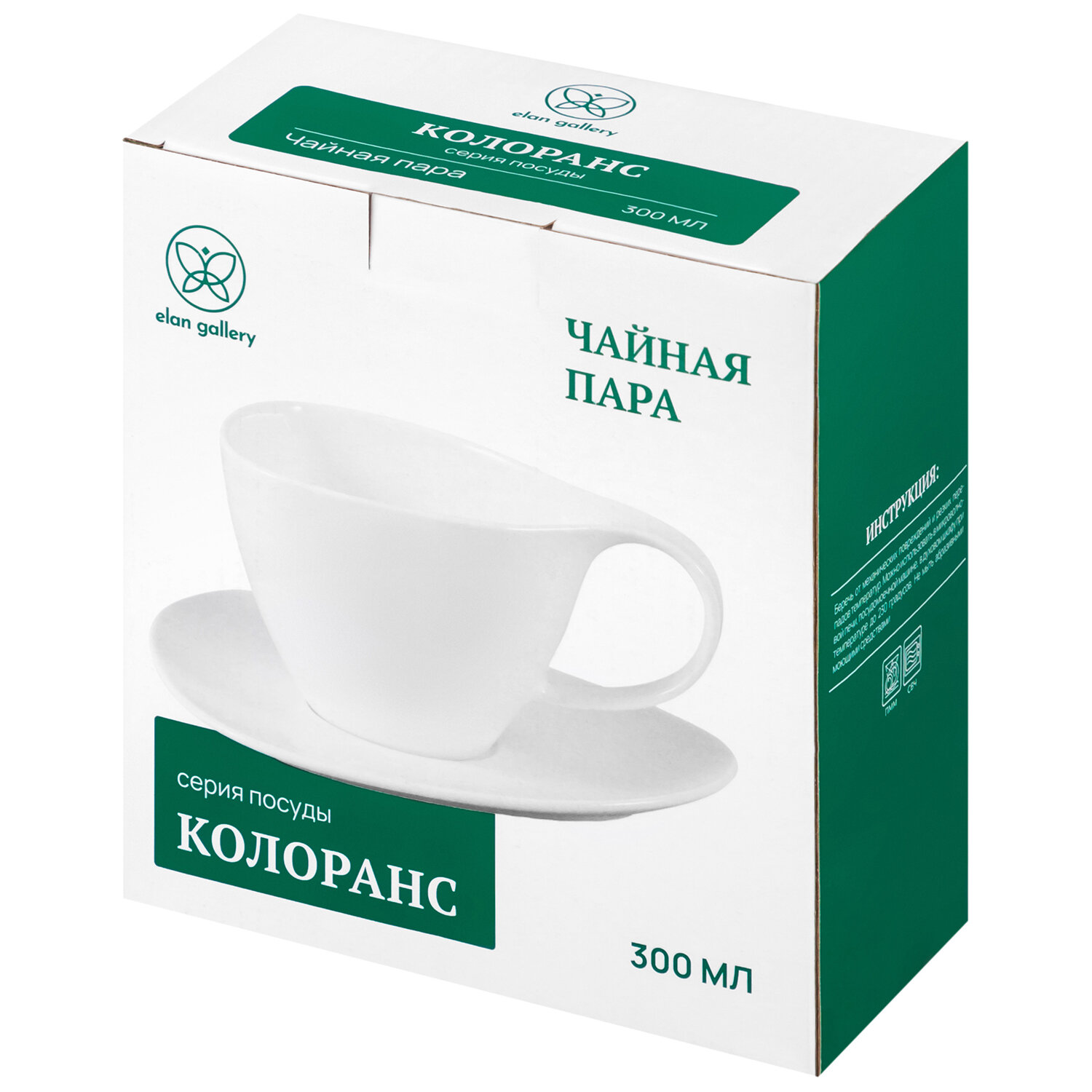 Чайная пара/ чашка с блюдцем/ кружка для чая/ кофе 2 предмета 300 мл Elan Gallery Колоранс, белая интересное: