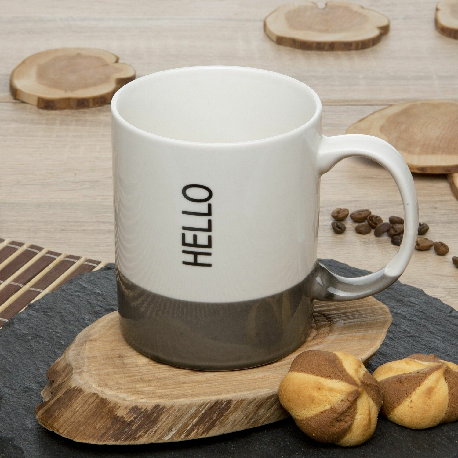 Купить Кружка фарфоровая Kingray, для чая и кофе, 320 мл, цвет серый/белый