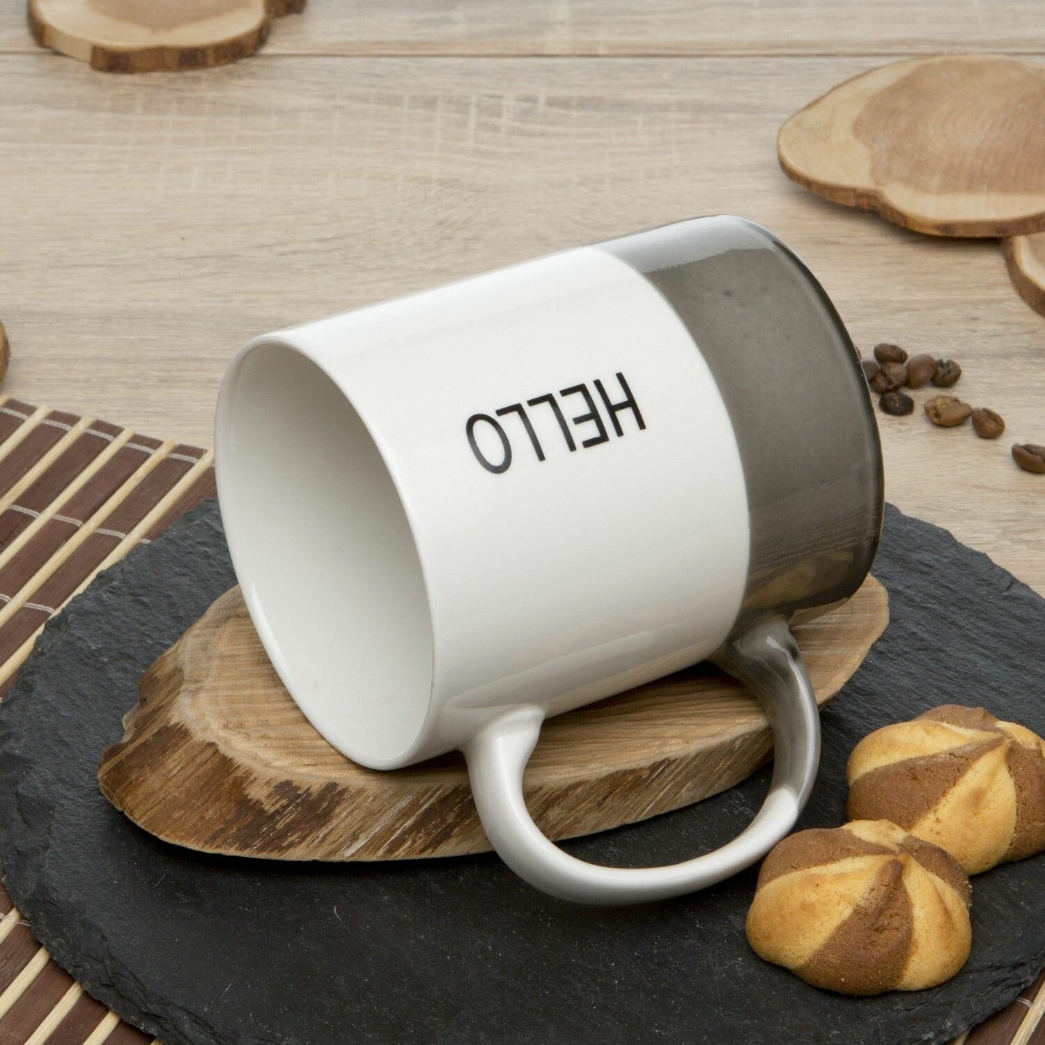 Кружка фарфоровая Kingray, для чая и кофе, 320 мл, цвет серый/белый интересное: