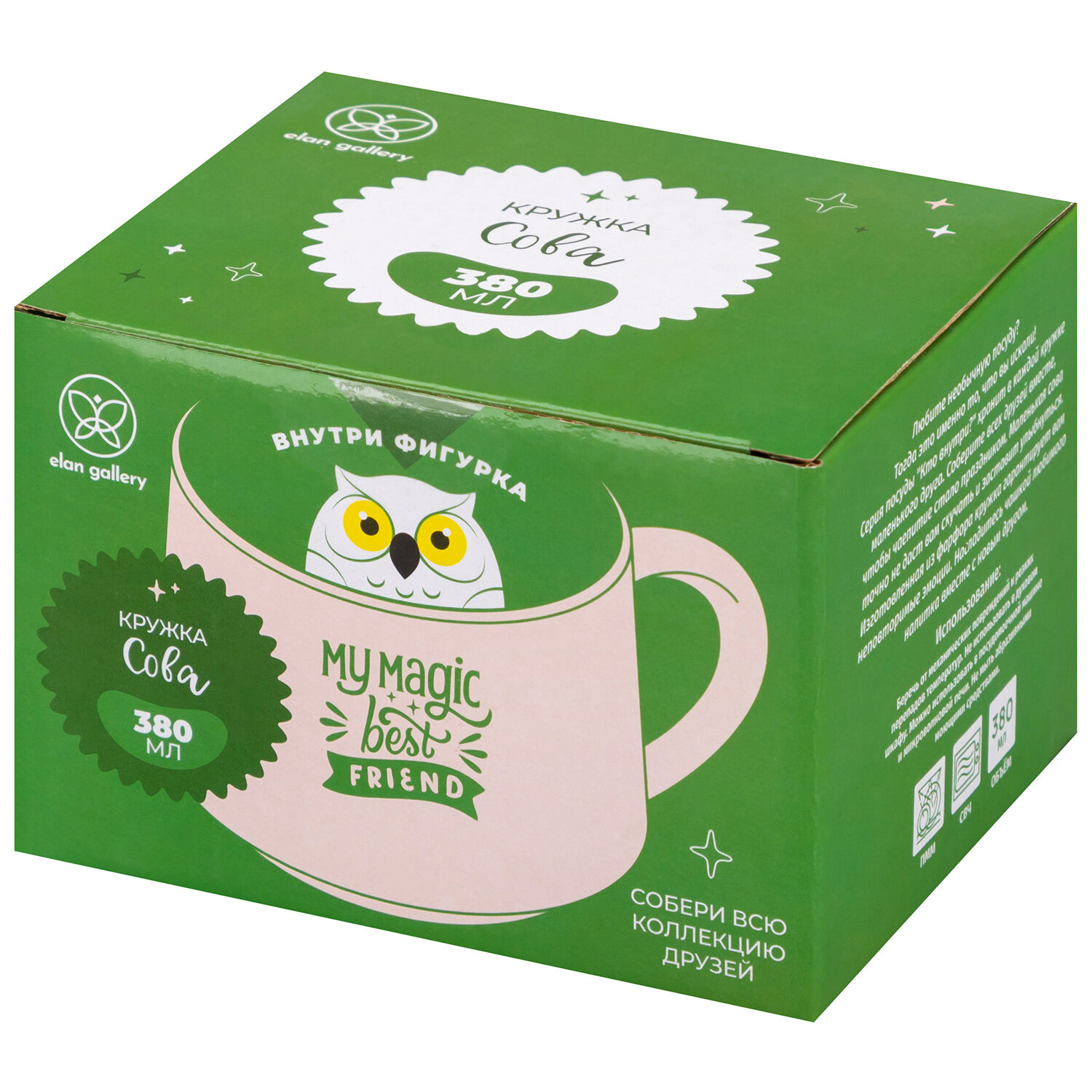 Кружка / чашка для кофе, чая 380 мл Elan Gallery "Сова" 13,5х10х8,3 см интересное: