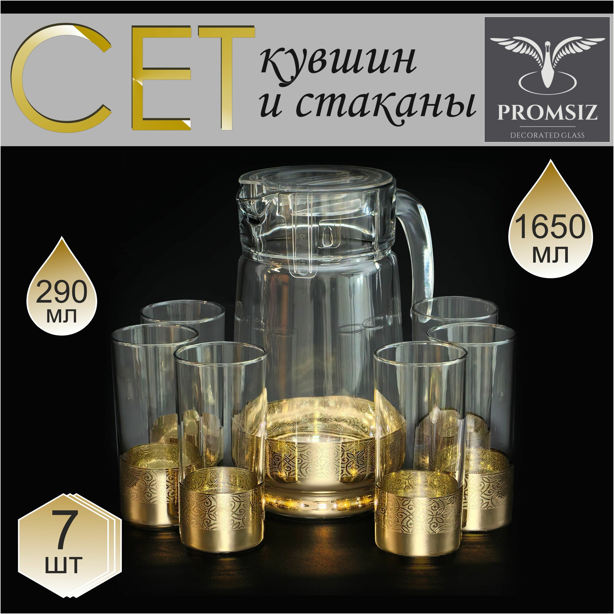 | Состав набора | крышка, кувшин, стакан, подарочная упаковка |