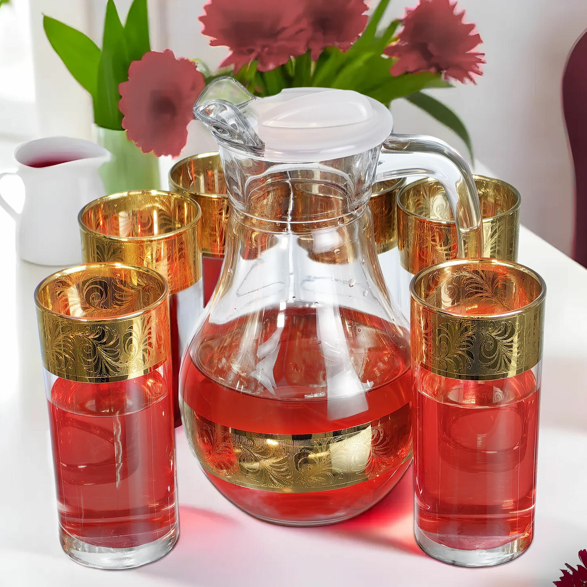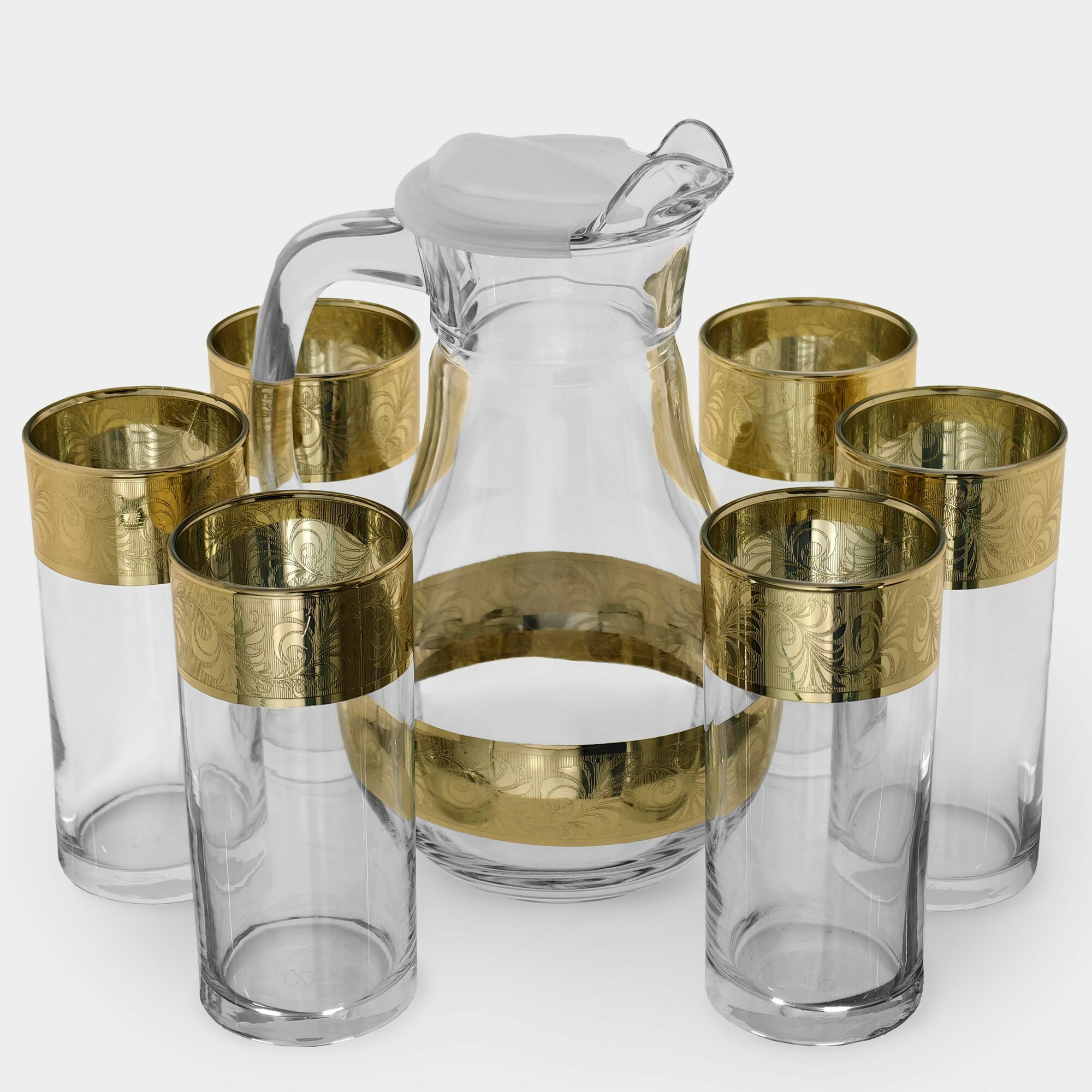Купить Подарочный набор с алмазной гравировкой PROMSIZ перфетто Кувшин с крышкой для напитков 1000 мл, Стаканы для напитков 290 мл 6 шт.