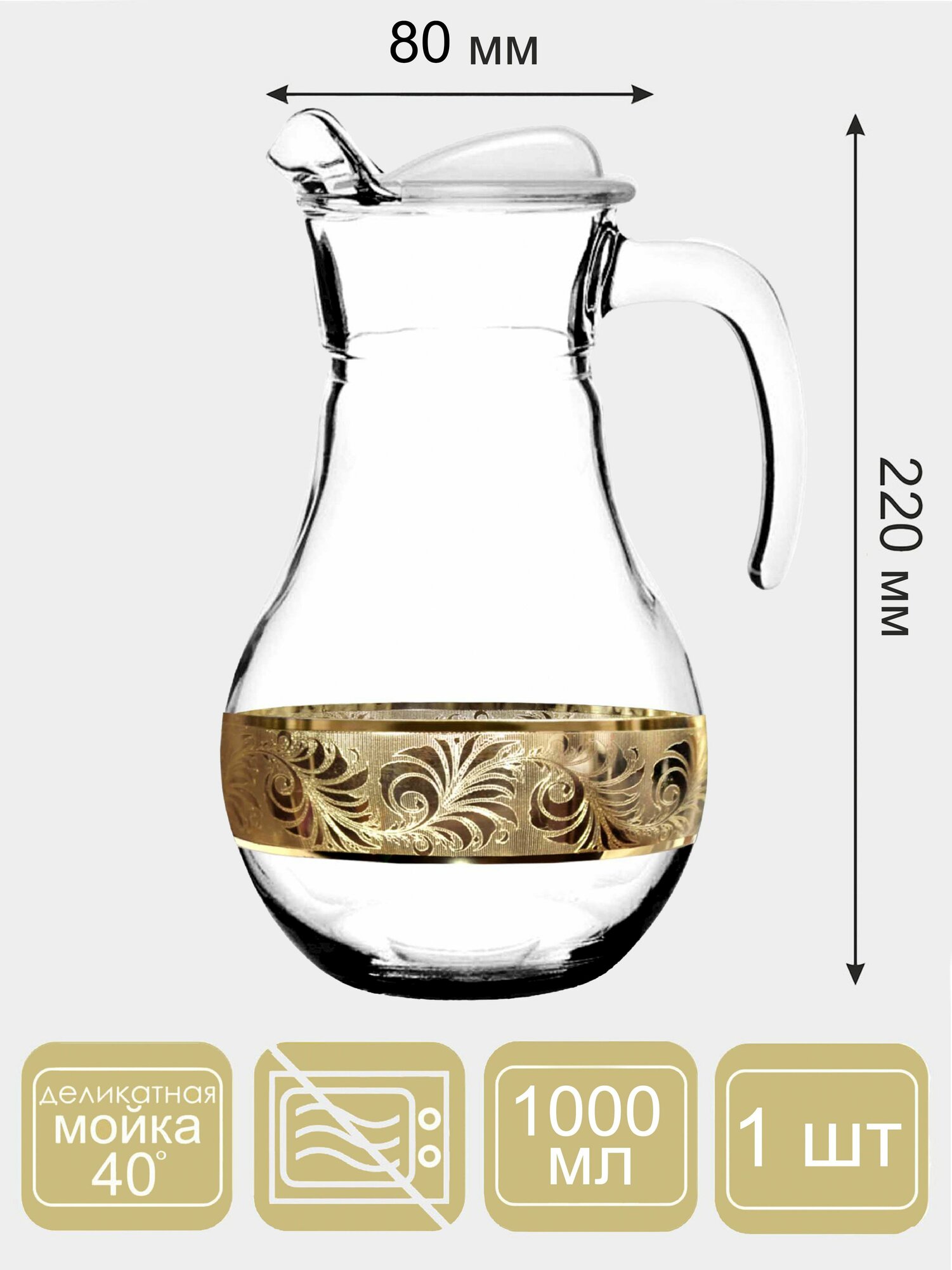 Графин стеклянный и кувшин для воды сока и лимонада 1л